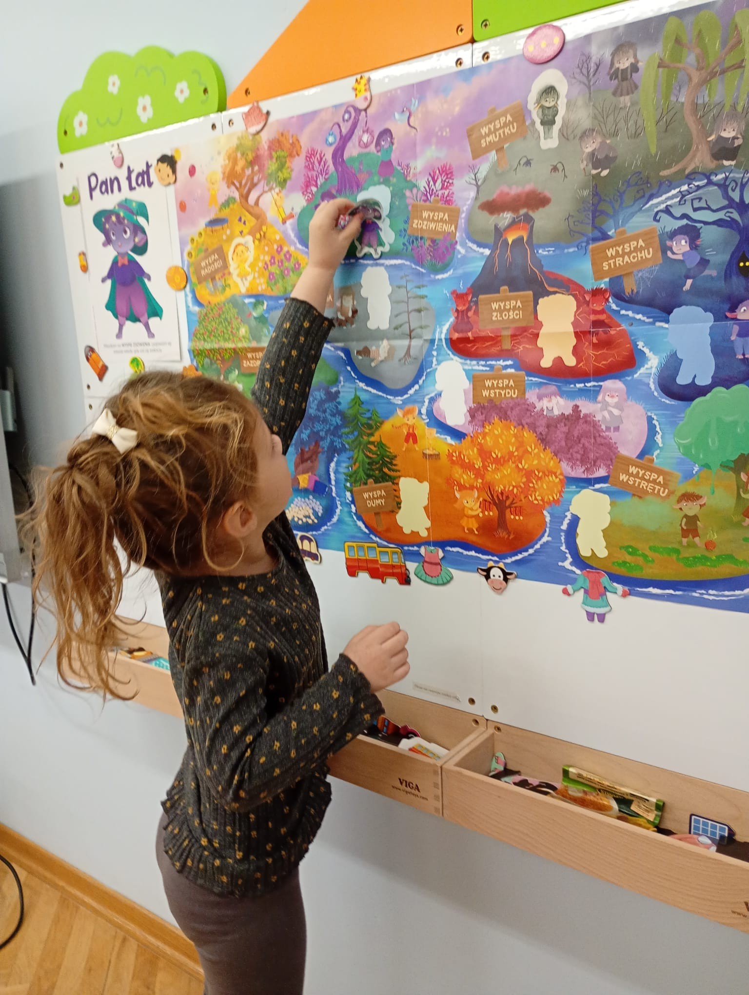Biedroneczki poznały dziś Pana Łał z Wyspy Zdziwienia. Bohaterem naszych zajęć był wesoły Czuciak, który uwielbia odkrywać nowe rzeczy i często przeżywa emocję zdziwienia. Podczas wspólnych zabaw dzieci uczyły się rozpoznawać tę emocję po mimice i reakcjach ciała, a także nazywać ją słowami. Dzięki temu rozwijały umiejętność wyrażania uczuć oraz zachęcały się wzajemnie do otwartości na nowe doświadczenia – tak jak robi to Pan Łał. Realizacja projektu edukacyjnego ” Czuciaki z Krainy Emocji”