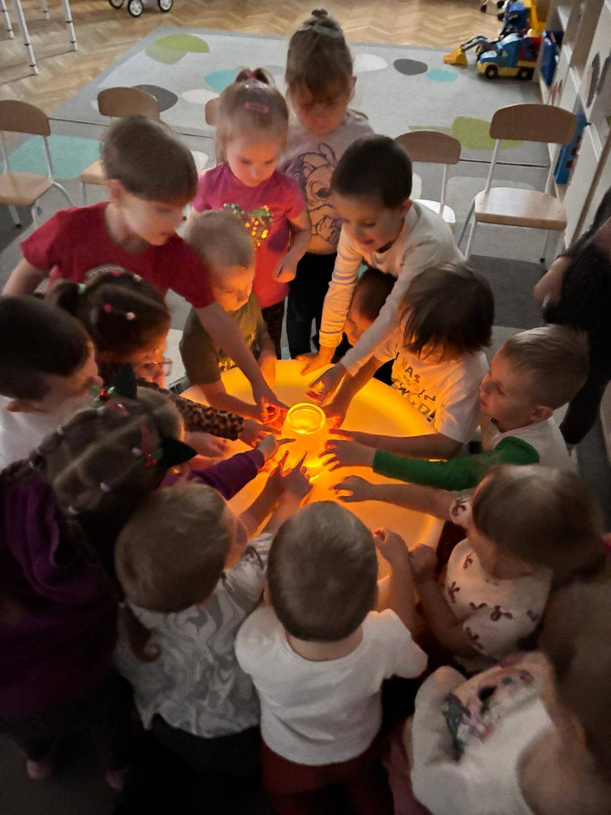 Pszczółki, Elfy, Biedronki, Smerfy i Krasnale podczas drugiego modułu zajęć grupowych “Uważność i relaksacja”, które prowadzi Pani Ewa – nasza psycholog. Ćwiczyliśmy umiejętność koncentrowania się na własnych uczuciach, rozpoznawania emocji, umiejętność świadomego i prawidłowego oddechu, wyciszenie i relaksację. Rozmawialiśmy o 5 zmysłach oraz o tym, jak ważną rolę odgrywają w naszym życiu. Ćwiczyliśmy kreatywność i wyobraźnię. Podjęliśmy wyzwanie skupienia w całkowitej ciszy przez 1 minutę. Dzieliliśmy się swoimi odczuciami.