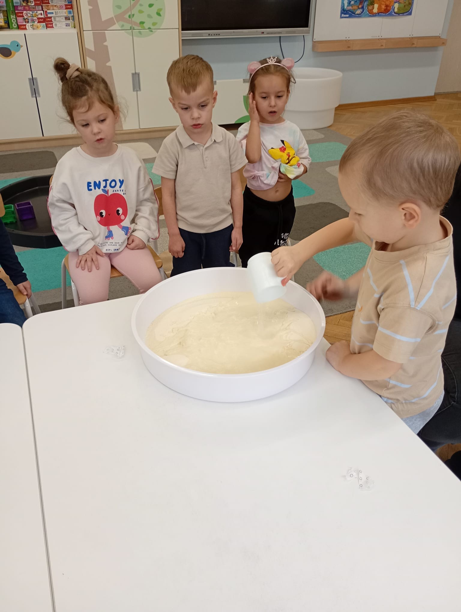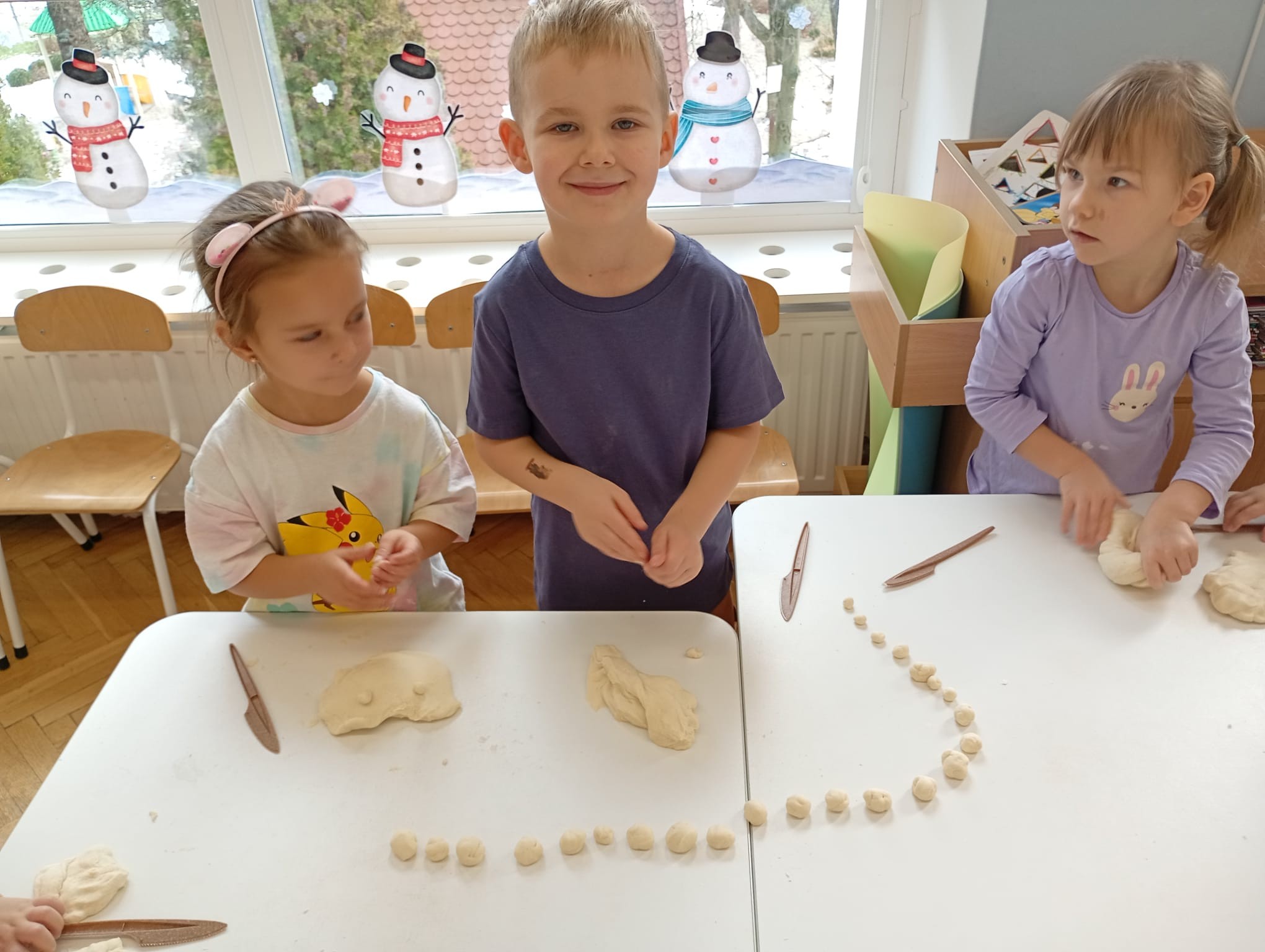 Dzisiejsze zajęcia przyniosły Biedroneczkom mnóstwo pozytywnych wrażeń i radości. W ramach realizacji innowacji pedagogicznej „Moje ręce są gotowe na zabawy nietypowe – rozwijanie sprawności motorycznych u dzieci w wieku przedszkolnym”, Biedronki rozwijały motorykę małą, ćwicząc siłę dłoni i palców poprzez manipulowanie masą plastyczną. Zajęcia dostarczyły dzieciom różnorodnych wrażeń dotykowych. Poznawaliśmy strukturę i właściwości materiału: jego lepkość, elastyczność i plastyczność. Aktywność manualna sprzyjała także wyrażaniu emocji oraz naturalnemu rozładowywaniu napięcia. Wspólne działania stały się również okazją do rozwijania umiejętności społecznych oraz komunikacyjnych.