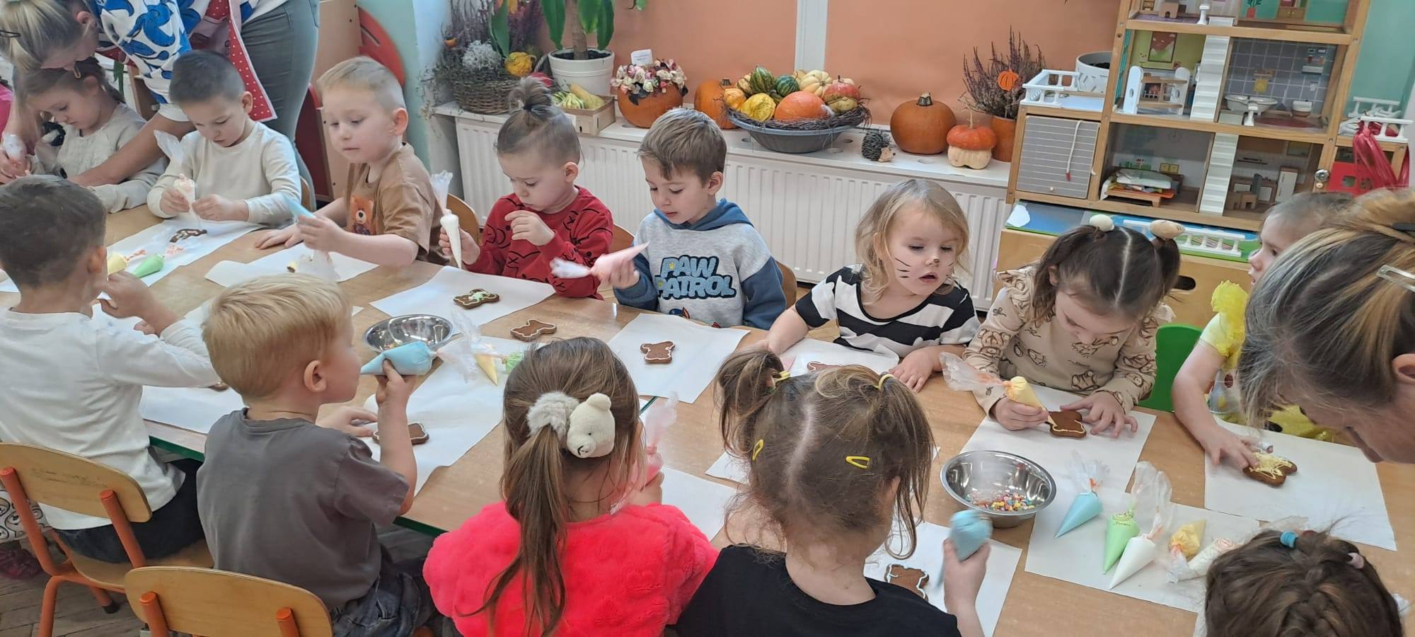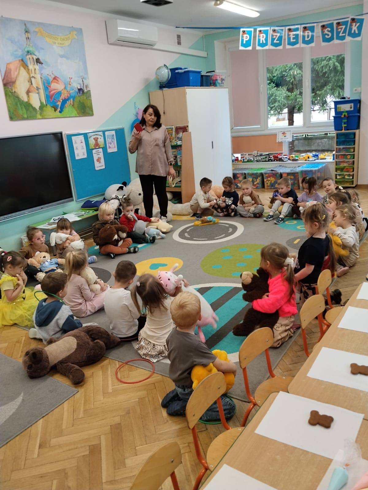 W Dzień Pluszowego Misia w grupie Elfow było miło, słodko i ciekawie. Dzieci poznały przedszkolne przygody Pluszowego Misia, że swoimi przytulankami rozwiazywaly zagadki I bawiły się przy muzyce. A mama i babcia Nadii zabrały przedszkolaków do misiowej cukierni, gdzie każdy przyozdobił ciasteczko z misiem nie tylko dla siebie. To byl miły, wesoly i pracowity dzień. Mama Tomka i Tomek mieli niespodziankę dla wszystkich przyjaciół Misia- medale i misiowe breloczki.