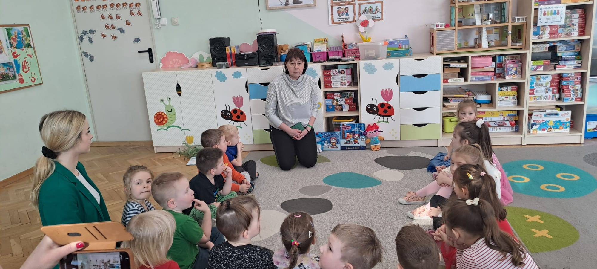 Dzisiaj grupę Elfow odwiedziły panie bibliotekarki Z Miejskiej Biblioteki Publicznej o/ dla dzieci i zaproponowały czterolatkom wspaniałe chwile z zimowymi przygodami Koci Kici. Dzieci z wielkim zainteresowaniem uczestniczyły w zabawach opartych na wysluchanej lekturze.