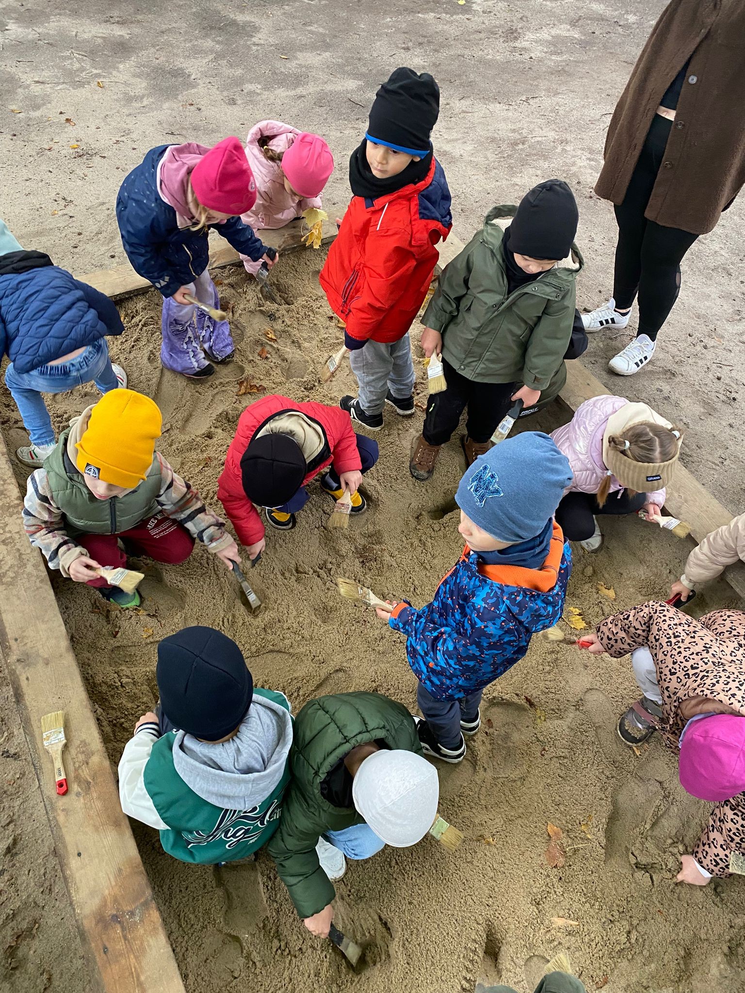 Na miejscu Krasnale zwiedziły zabytkowy pałac, poznając jego historię i ciekawostki związane z tym niezwykłym miejscem. Następnie wzięły udział w ciekawych warsztatach – ceramicznych oraz archeologicznych, gdzie mogły wcielić się w małych odkrywców, szukając „skarbów” i poznając tajniki pracy archeologa. Po intensywnych zajęciach przyszedł czas na wspólne ognisko z pieczeniem kiełbasek oraz wesołe zabawy z animatorami, które wywołały wiele uśmiechów i radości. To była wycieczka pełna wiedzy, zabawy i niezapomnianych wrażeń!