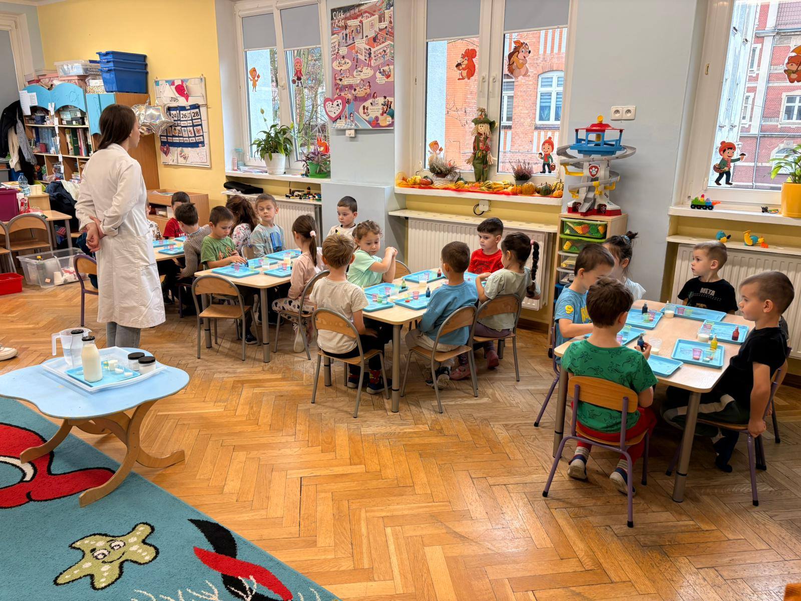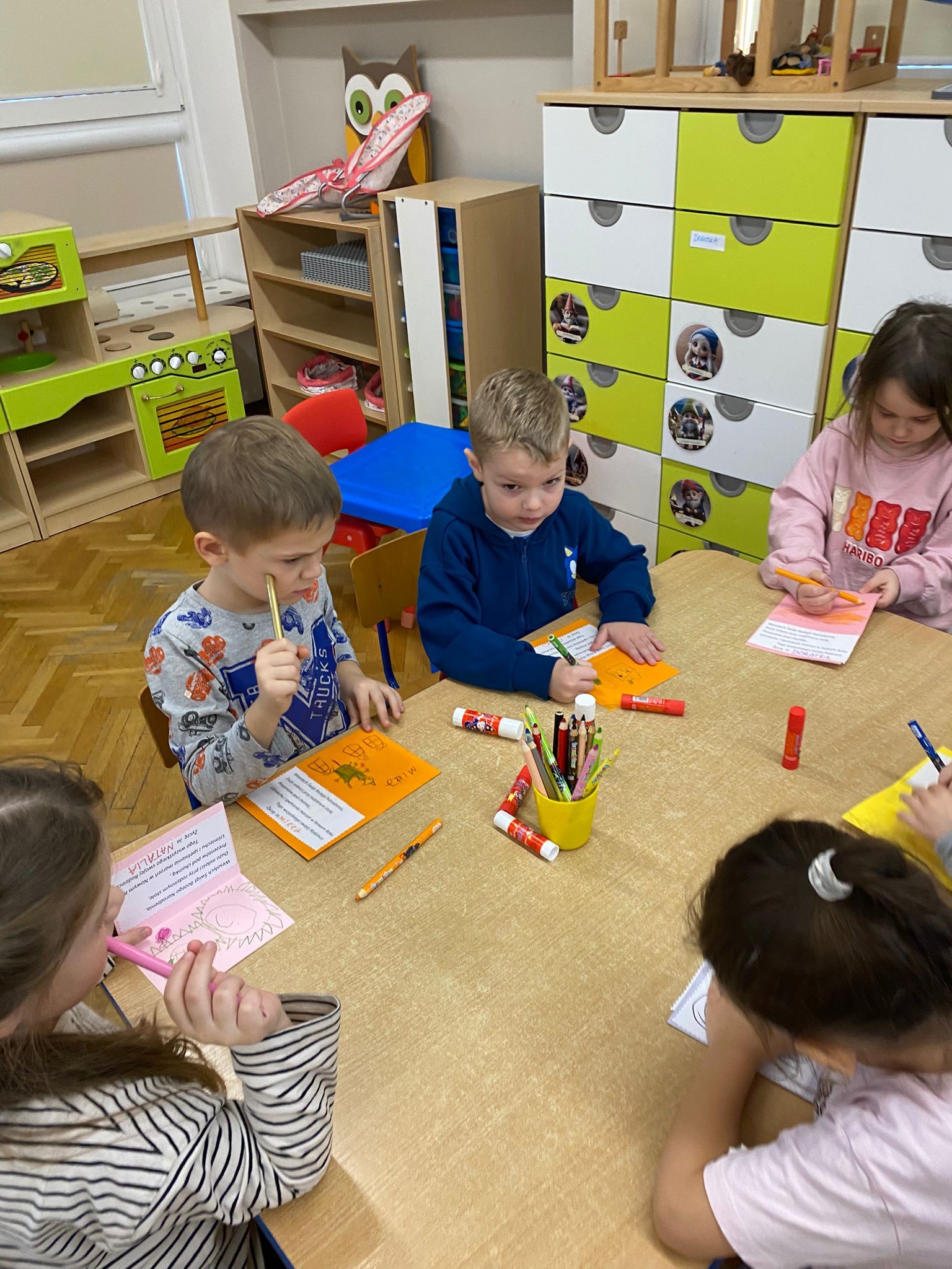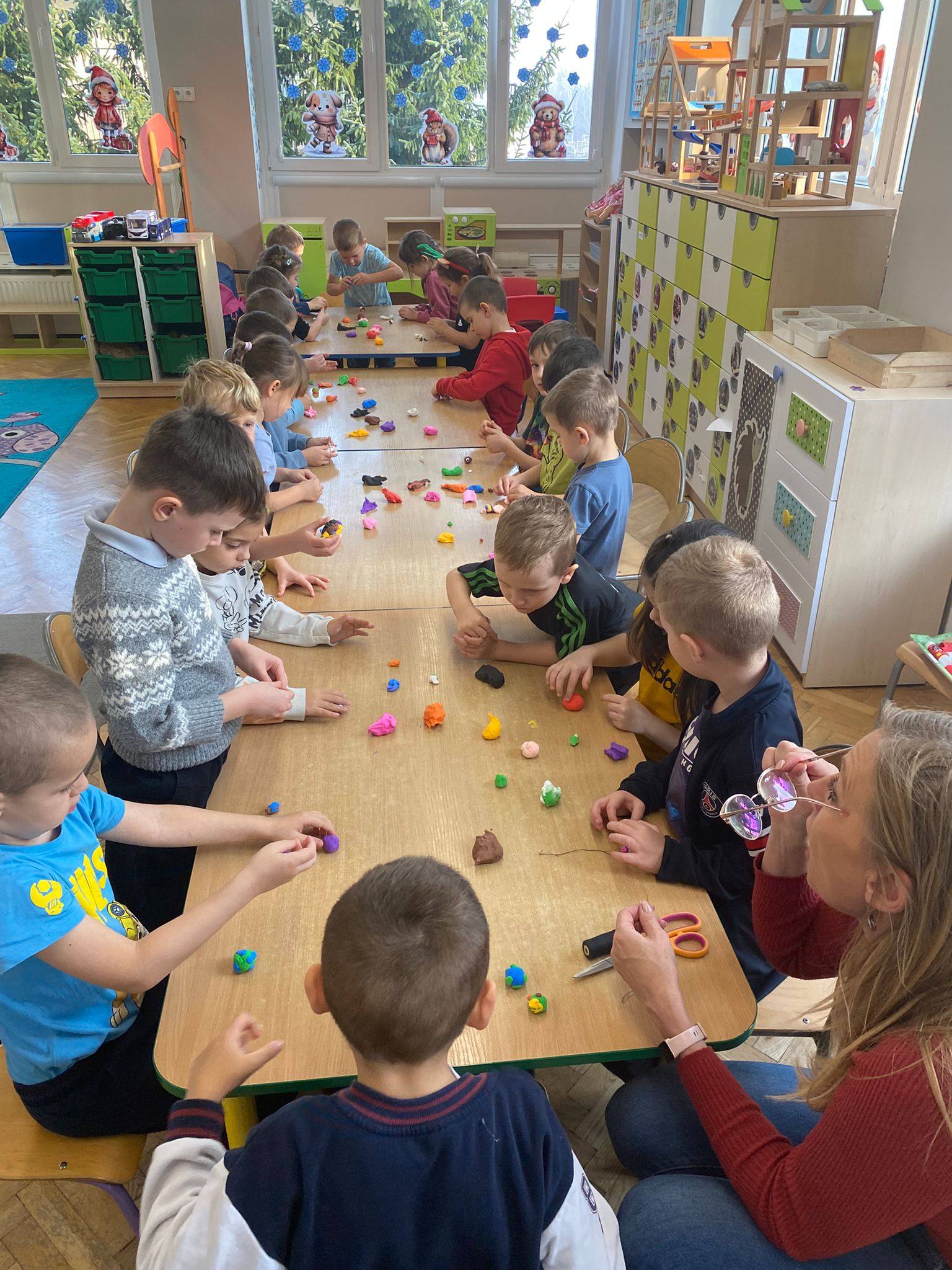 Pszczółki, Elfy, Biedronki, Smerfy i Krasnale podczas drugiego modułu zajęć grupowych “Uważność i relaksacja”, które prowadzi Pani Ewa – nasza psycholog. Ćwiczyliśmy umiejętność koncentrowania się na własnych uczuciach, rozpoznawania emocji, umiejętność świadomego i prawidłowego oddechu, wyciszenie i relaksację. Rozmawialiśmy o 5 zmysłach oraz o tym, jak ważną rolę odgrywają w naszym życiu. Ćwiczyliśmy kreatywność i wyobraźnię. Podjęliśmy wyzwanie skupienia w całkowitej ciszy przez 1 minutę. Dzieliliśmy się swoimi odczuciami.