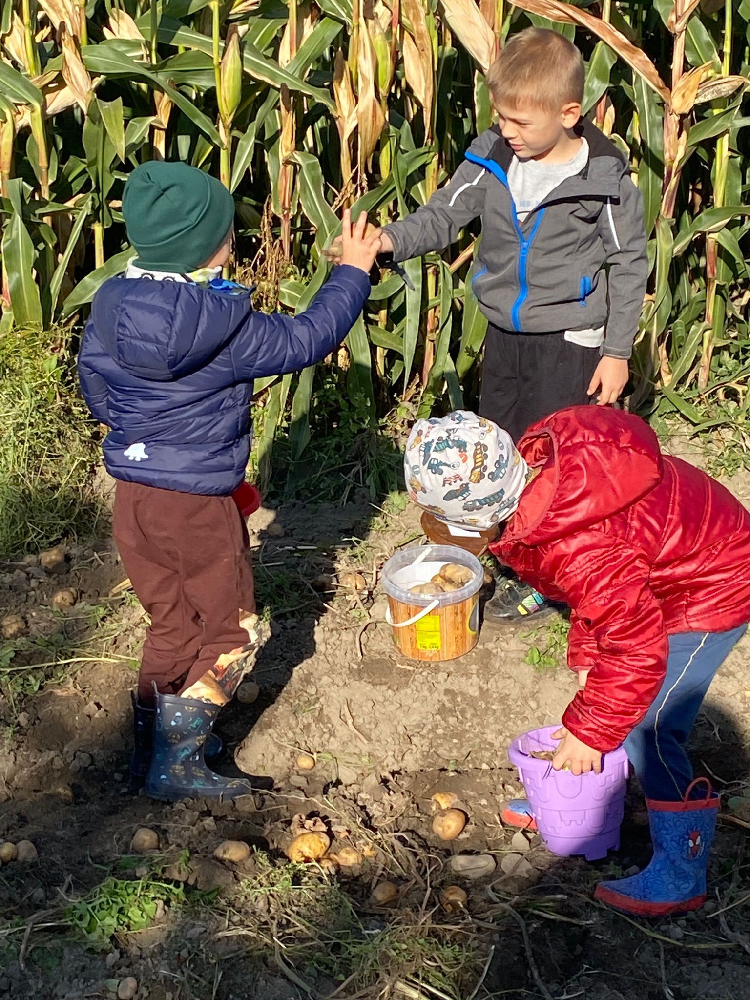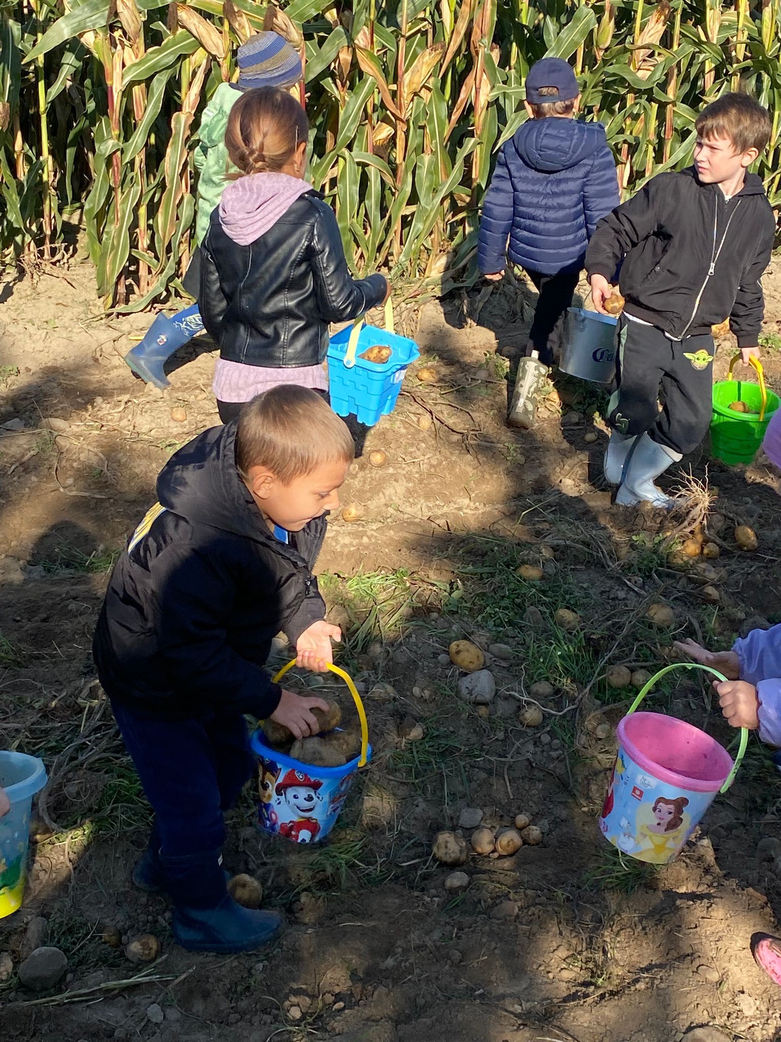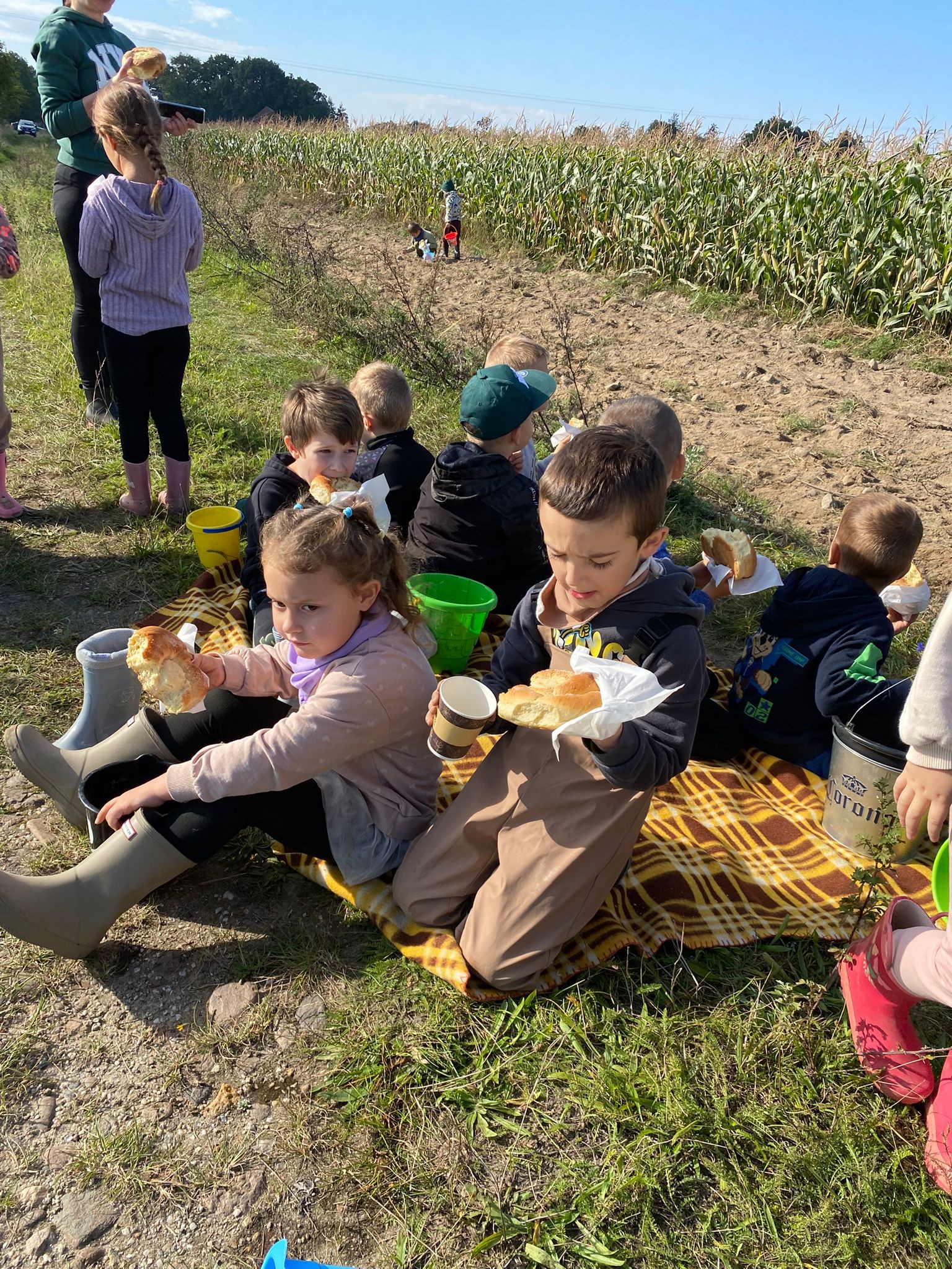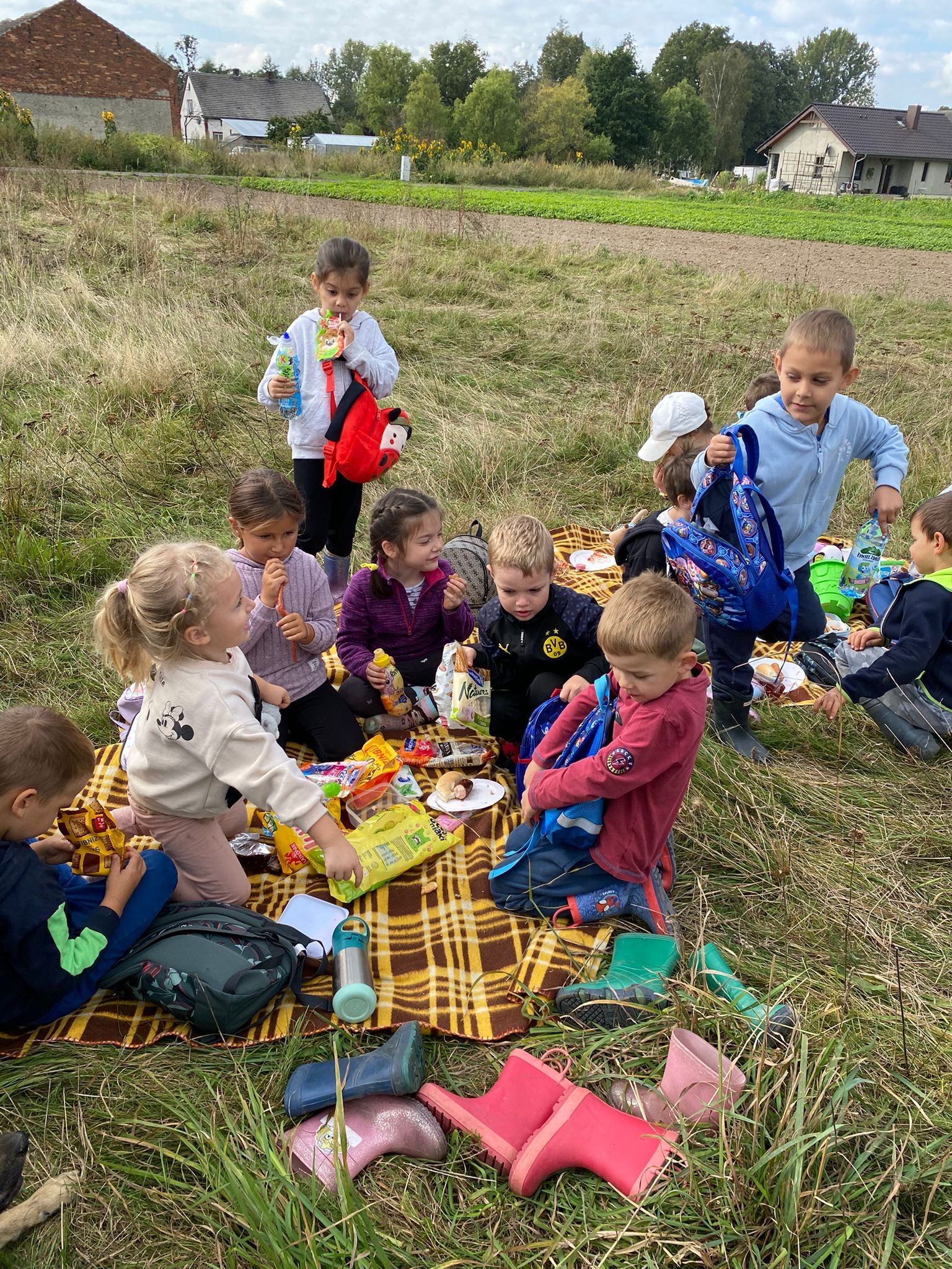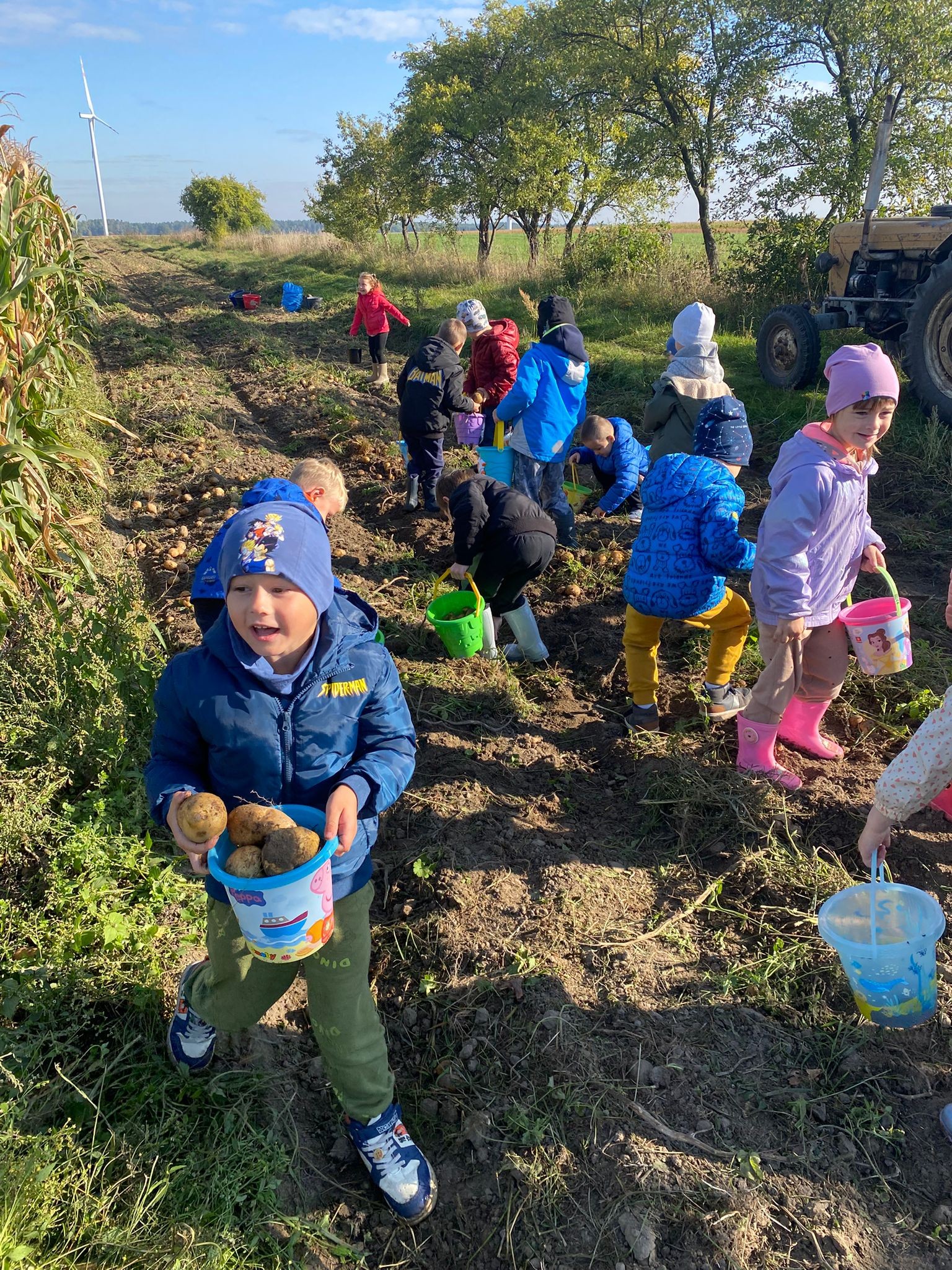 Kolejne jesienne zadanie za nami. Dzięki uprzejmości Państwa Micinowskich Krasnale miały dziś okazję brać udział w wykopkach. Było wesoło, pracowicie i smacznie bo na koniec czekały na nas kiełbaski z ogniska. Dzieci mogły też zobaczyć olbrzymie stado krów , które hoduje dziadek Marcela. Dziękujemy bardzo było rewelacyjnie .