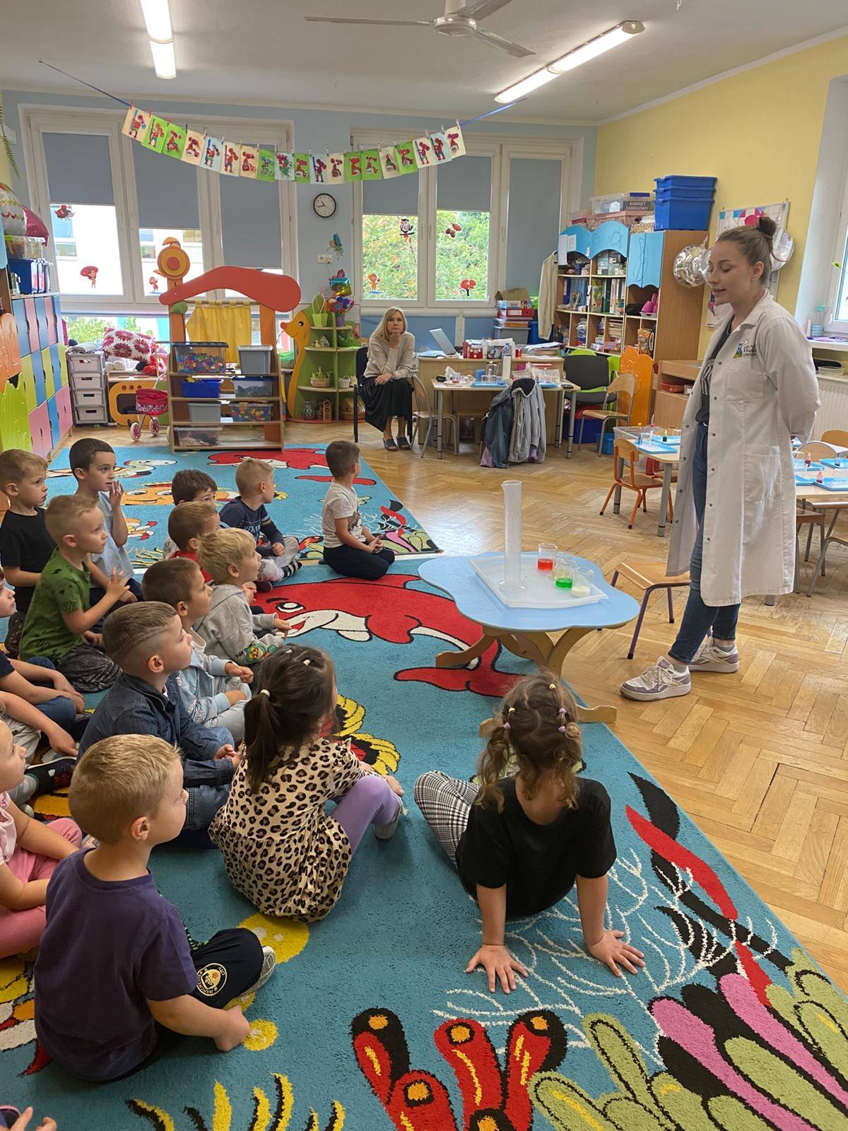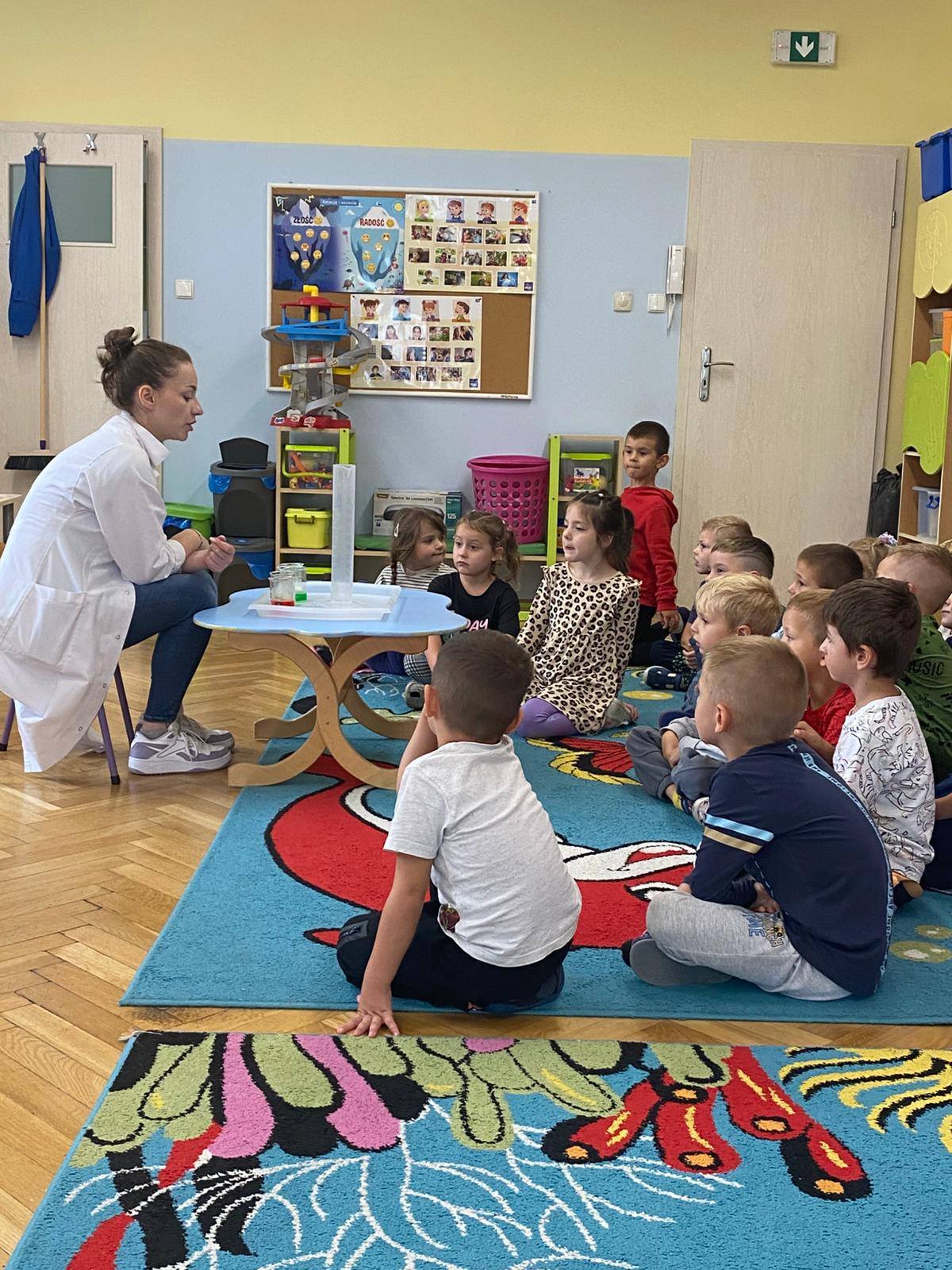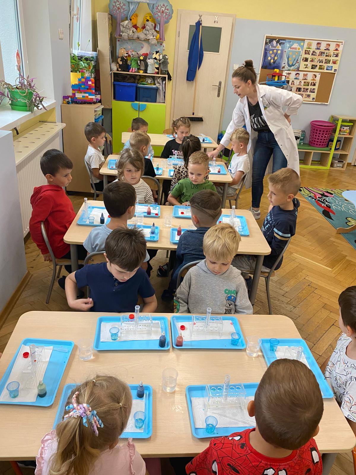 Pierwsze zajęcia z cyklu Krainy eksperymentów w grupie Krasnali. Dziś dzieci uczyły się o gęstości cieczy i zrobiły probówki sensoryczne.