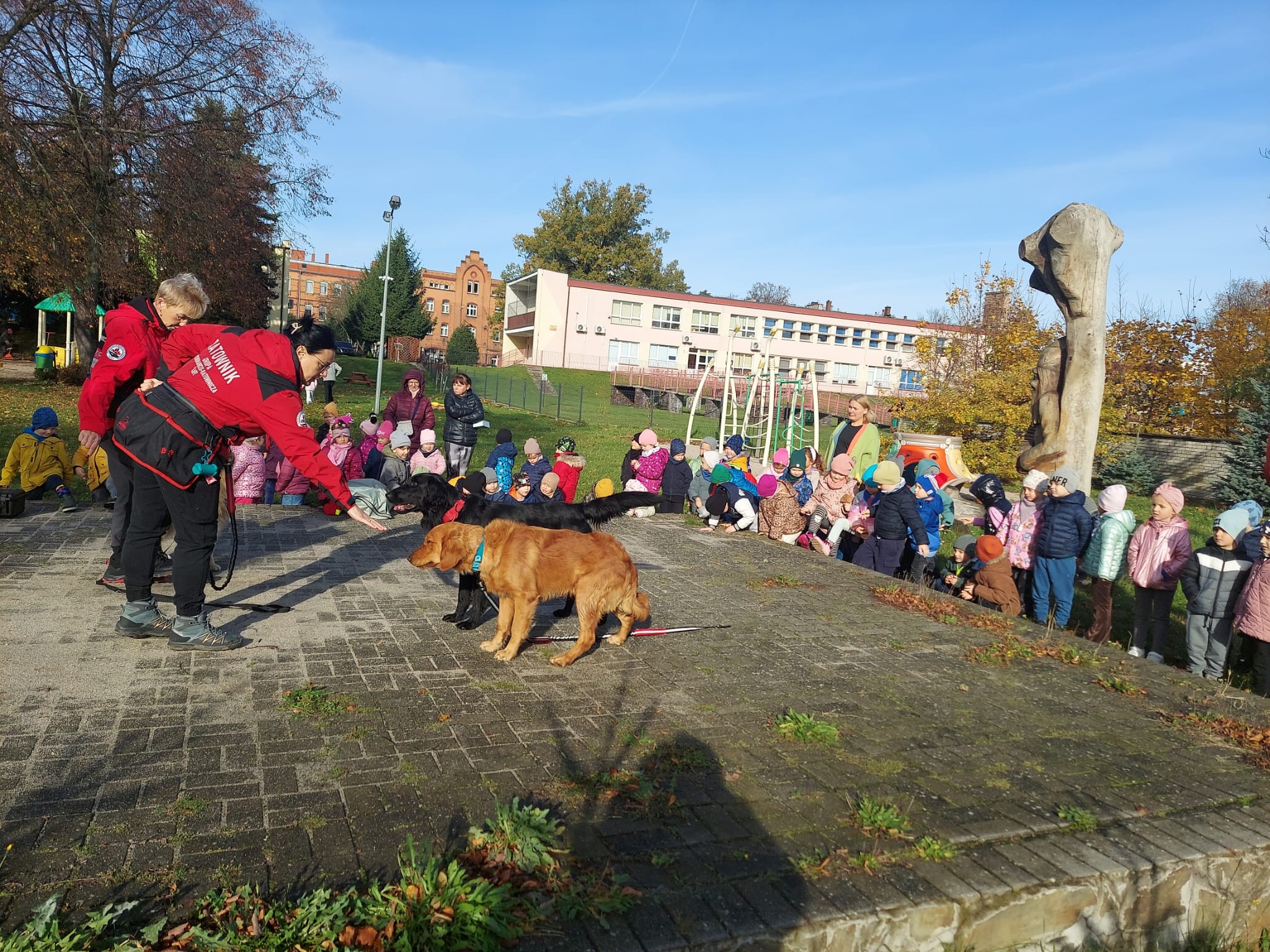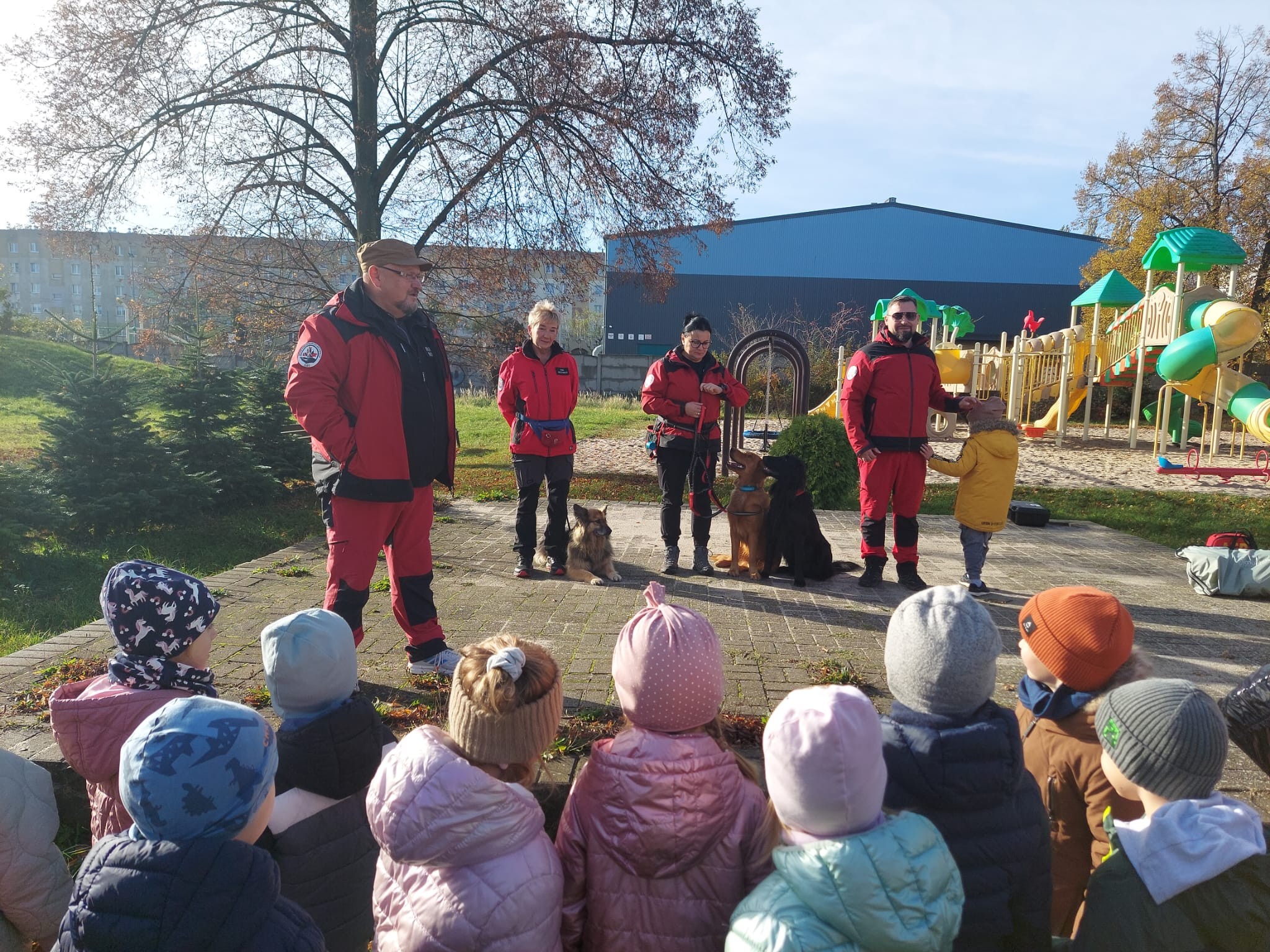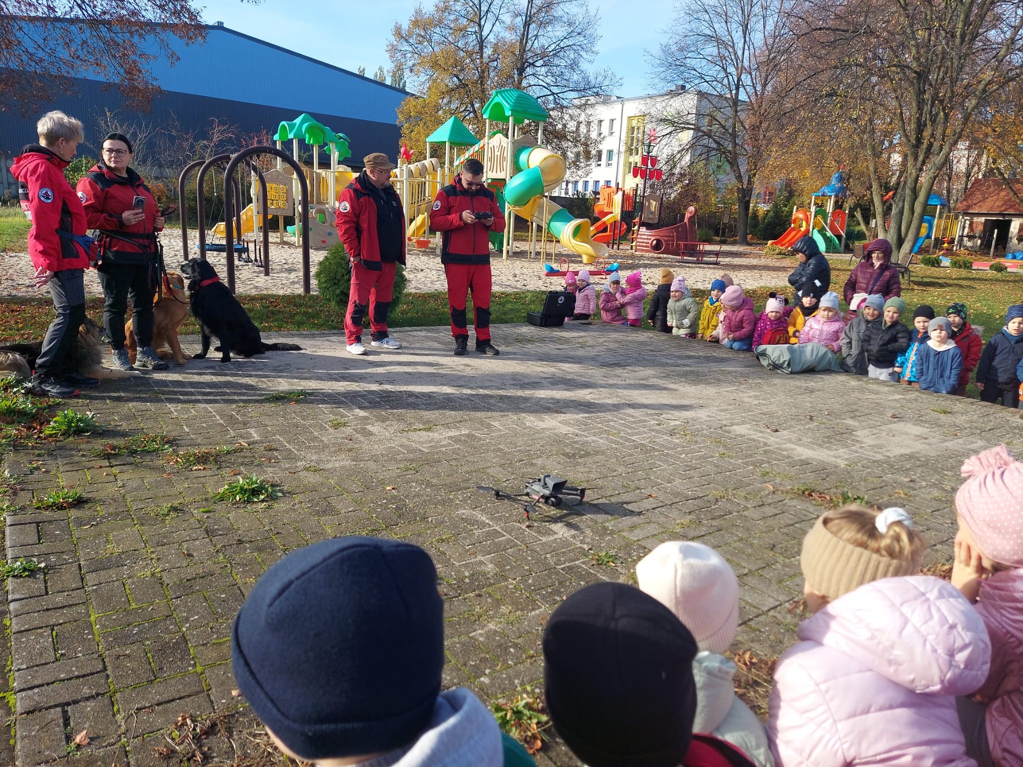 Dzięki uprzejmości taty Tymona gościliśmy ratowników z grupy poszukiwawczo- ratowniczej. Mieliśmy okazję zobaczyć pieski biorące udział w akcjach poszukiwawczych, pracę ratowników z dronami oraz nauczyć się jak wykonać resuscytację . Dziękujemy Panu Kamilowi za wspaniałe, pouczające spotkanie