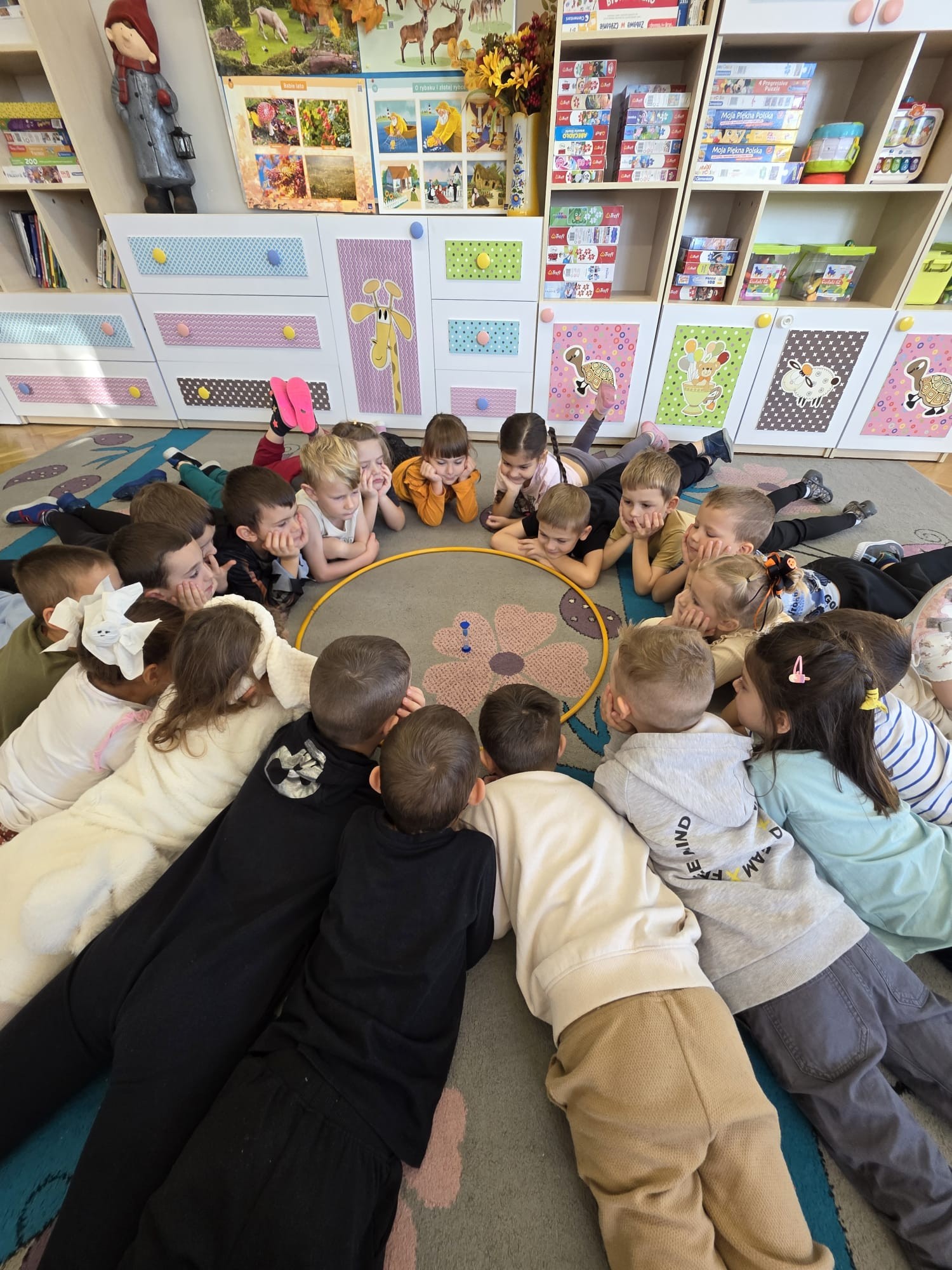 Pszczółki, Elfy, Biedronki, Smerfy i Krasnale rozpoczęły w tym tygodniu z panią Ewą – naszą psycholog cykl zajęć “Uważność i relaksacja”. Ćwiczyliśmy umiejętność koncentracji uwagi, świadomego i prawidłowego oddechu, umiejętności radzenia sobie z trudnymi emocjami, wyciszenie i relaksację.
