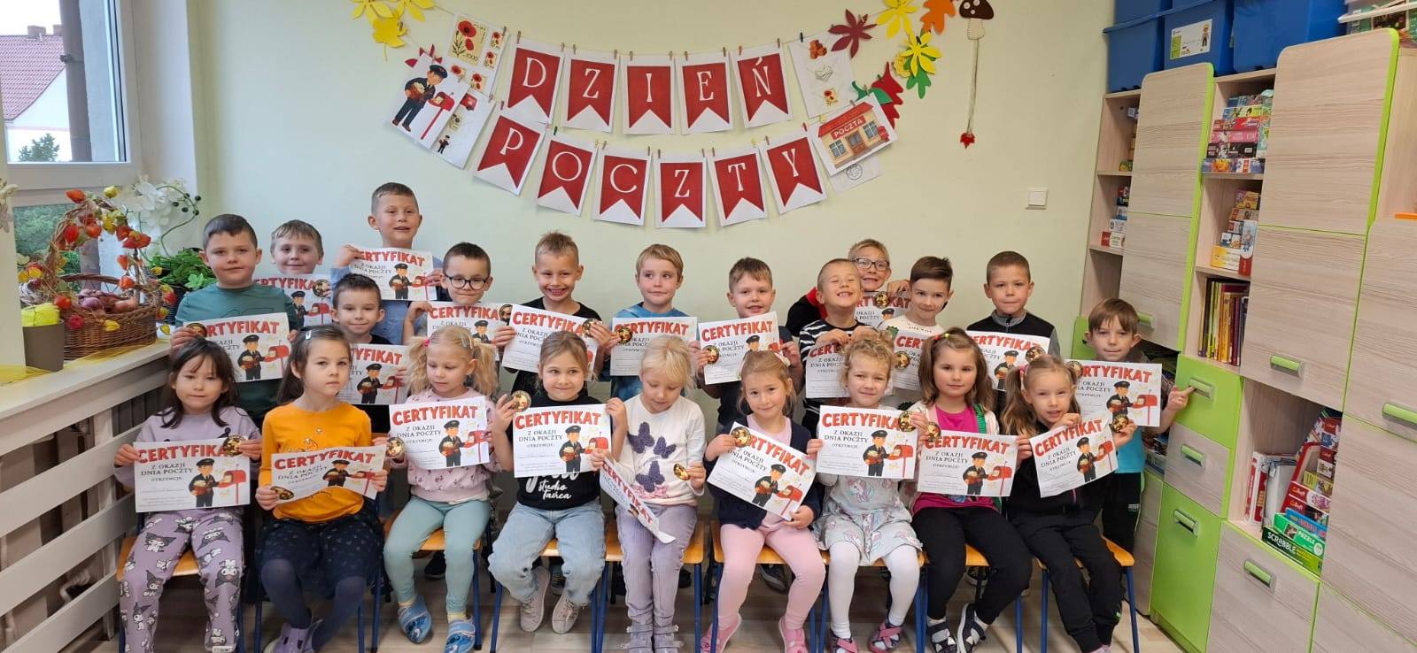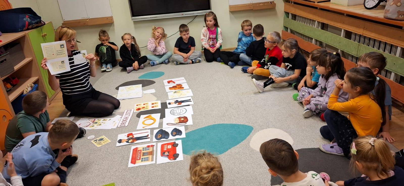 W naszym przedszkolu obchodziliśmy Dzień Poczty Polskiej . Poznaliśmy zawód listonosza jego obowiązki, oraz jakie przedmioty są mu niezbędne do wykonywania swojej pracy. Podczas zajęć dzieci poznały podstawowe pojęcia takie jak: poczta, list, adresat, nadawca, przykleiły znaczki na swoje koperty i wysłały listy do swoich rodziców. Każdy przedszkolak już wie, w jaki sposób do jego domu trafiają listy oraz paczki.