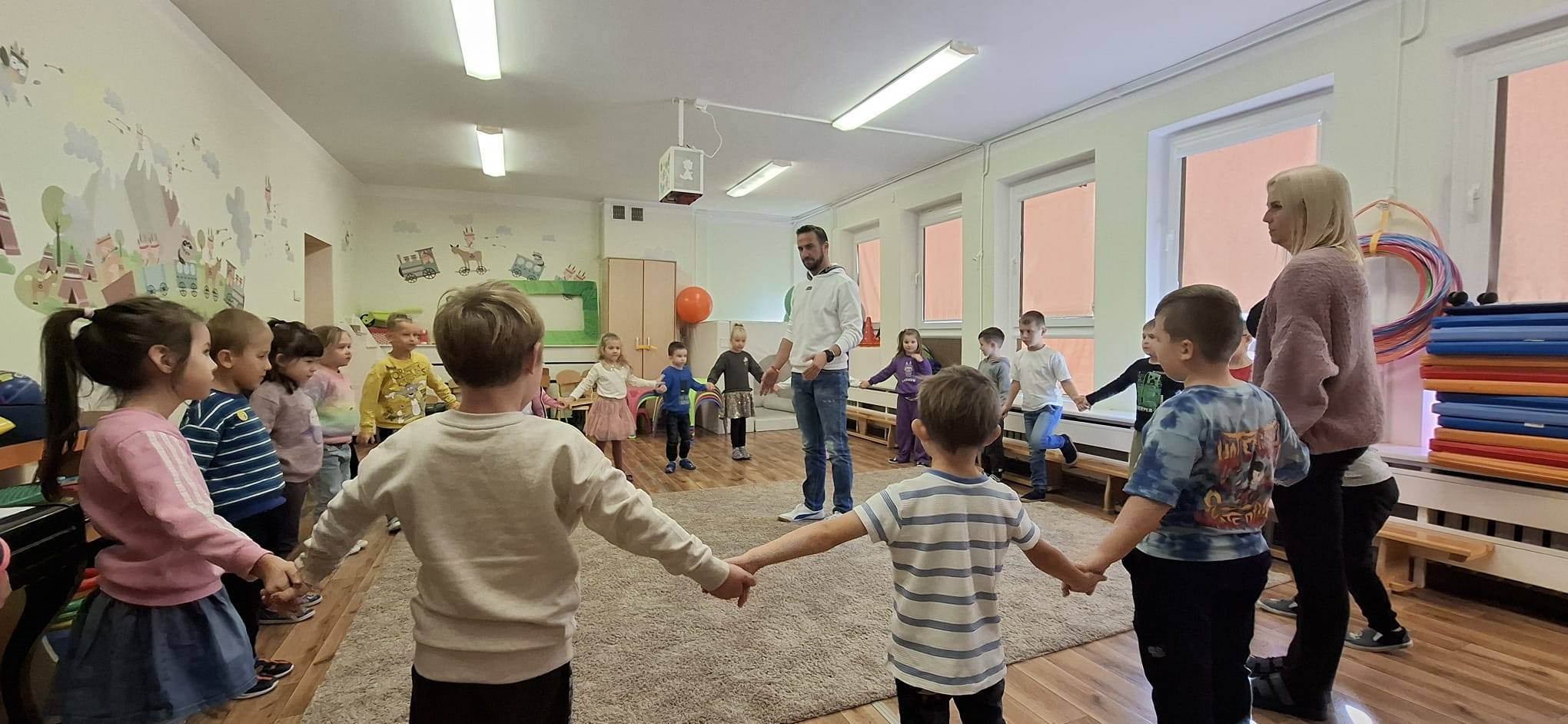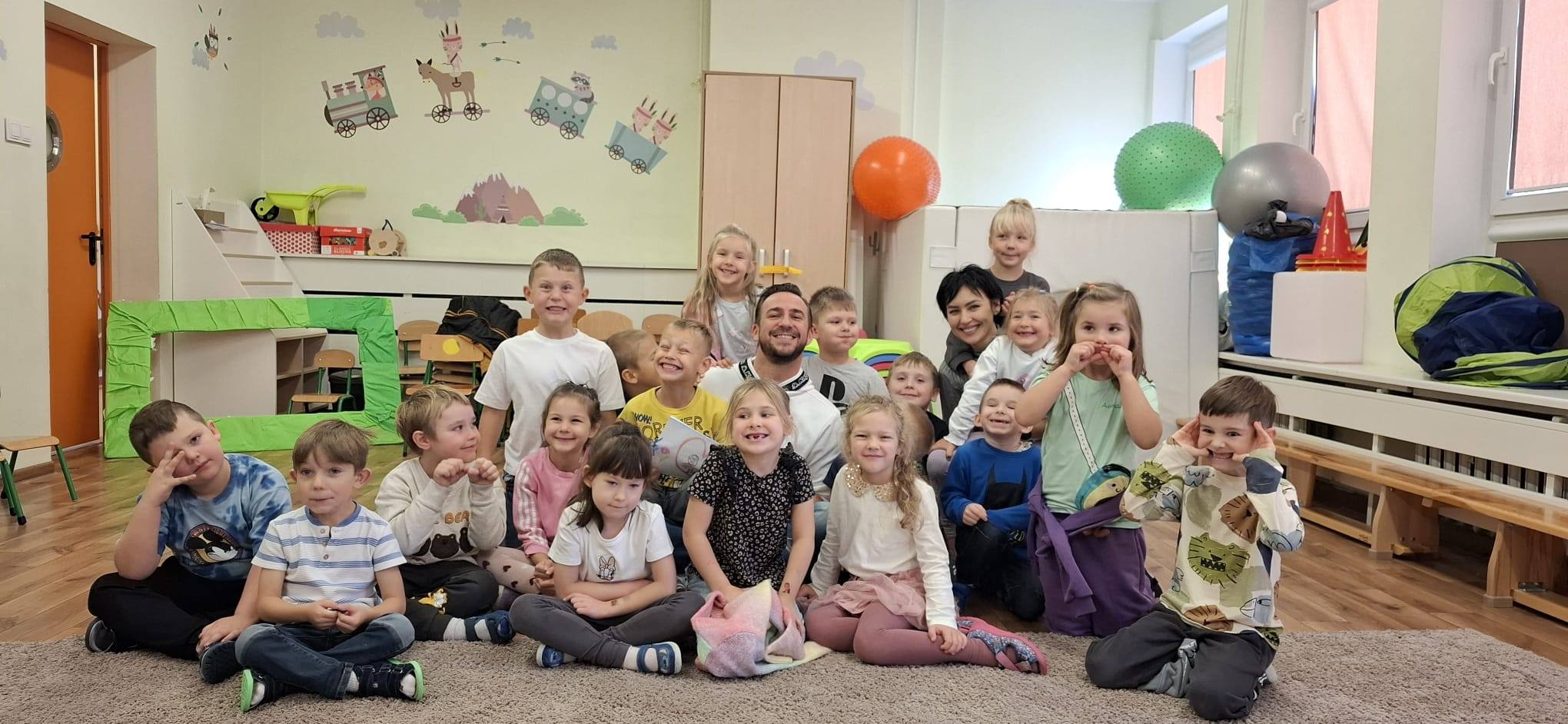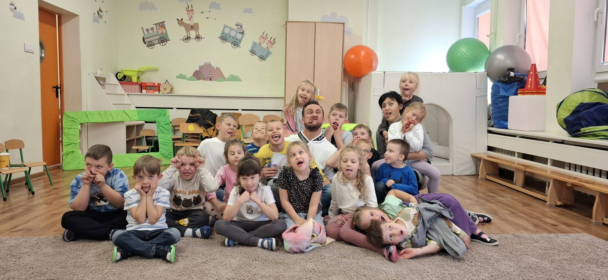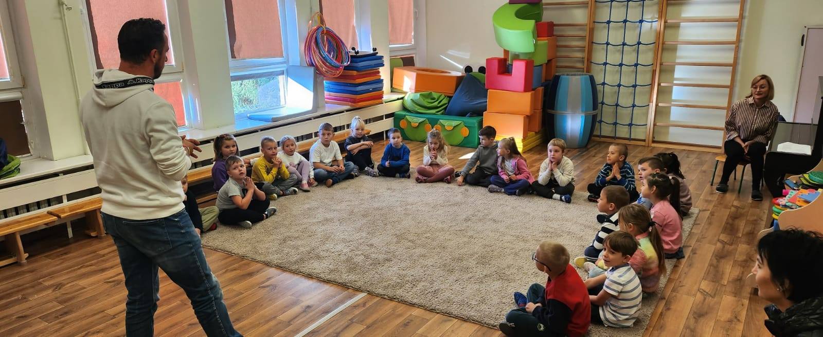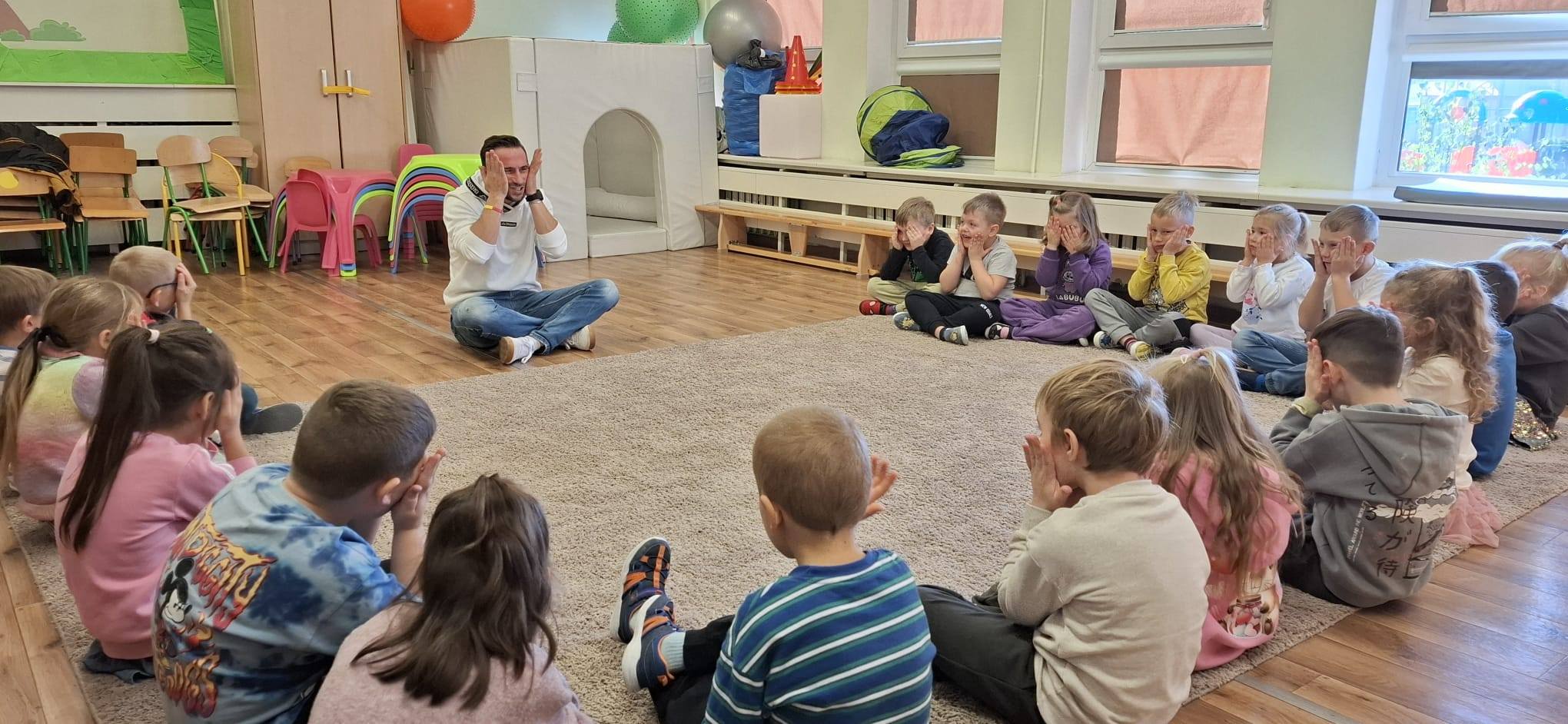 Zabawy teatralne wywierają duży wpływ na postawy moralne dzieci,kształtują osobowość, rozwijają wyobraźnię, doskonalą mowę, rozwijają płynność ruchów oraz zwiększają poczucie własnej wartości. Dziękujemy Panu Damianowi Wasilewskiemu i Pani Oli mamie Wojtka za to inspirujące spotkanie. Podczas swojej wizyty Pan Damian przeprowadził z dziećmi wyjątkowe warsztaty teatralne.Nie zabrakło rozgrzewki- ćwiczenia aparatu mowy, zabawy z językiem, ustami i policzkami, które wzbudziły wiele radości. Ślicznie dziękujemy i mamy nadzieję na kolejne teatralne wizyty w naszym przedszkolu.