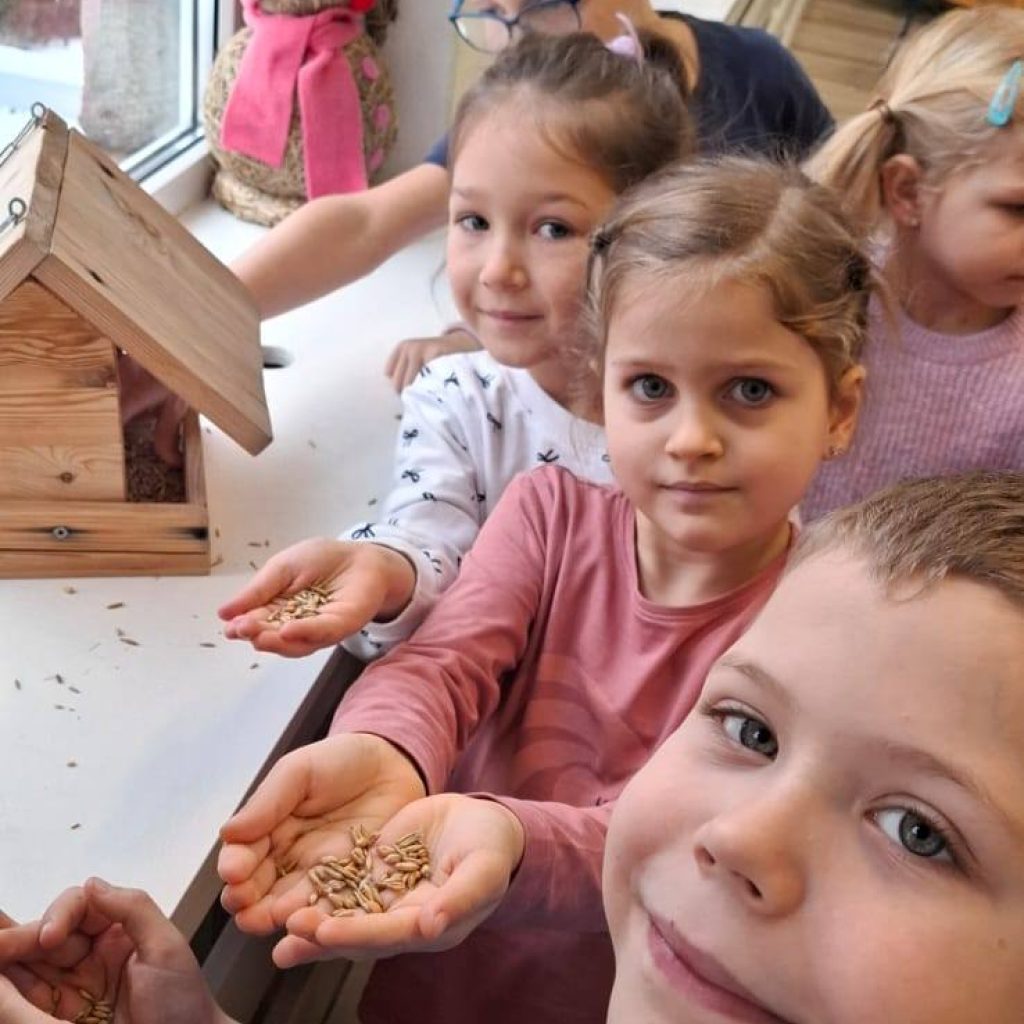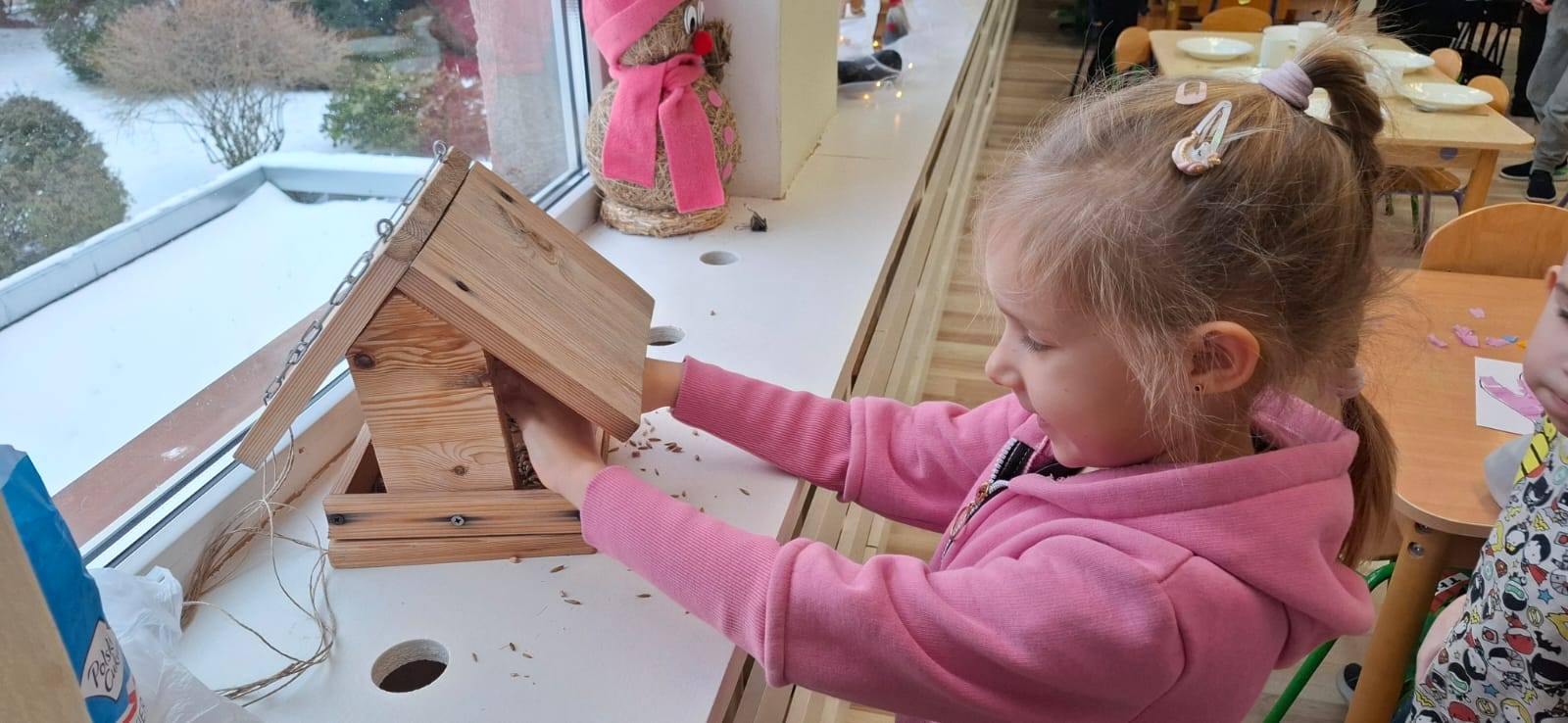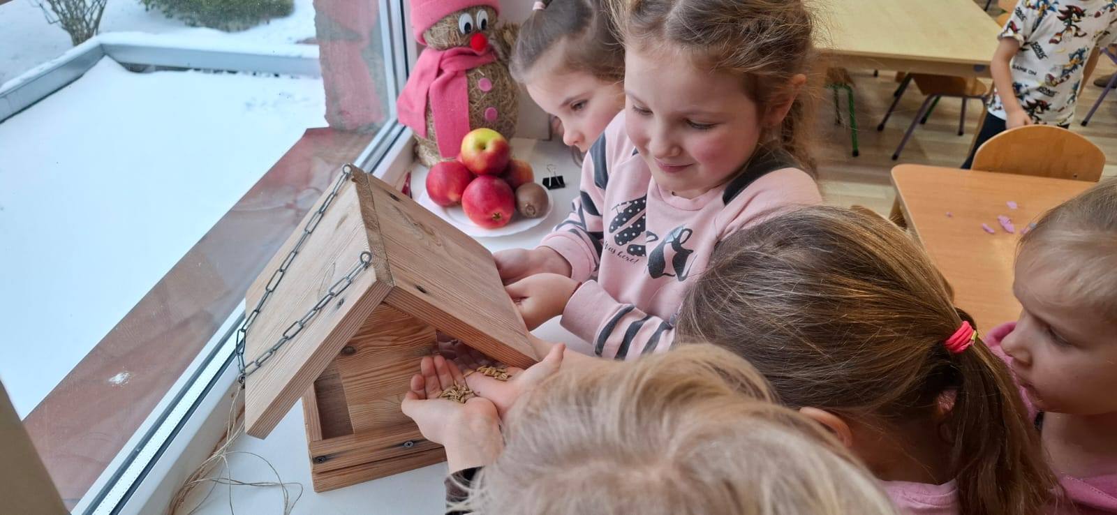 Podczas zimowych dni uczymy się jak ważna jest troska o ptaki i zwierzęta. Dokarmiając ptaki dzieci uczą się odpowiedzialności, wiedzą jak ważna jest pomoc zwierzętom w okresie zimy. Misie obiecały że będą dbały o ptasią stolówkę.