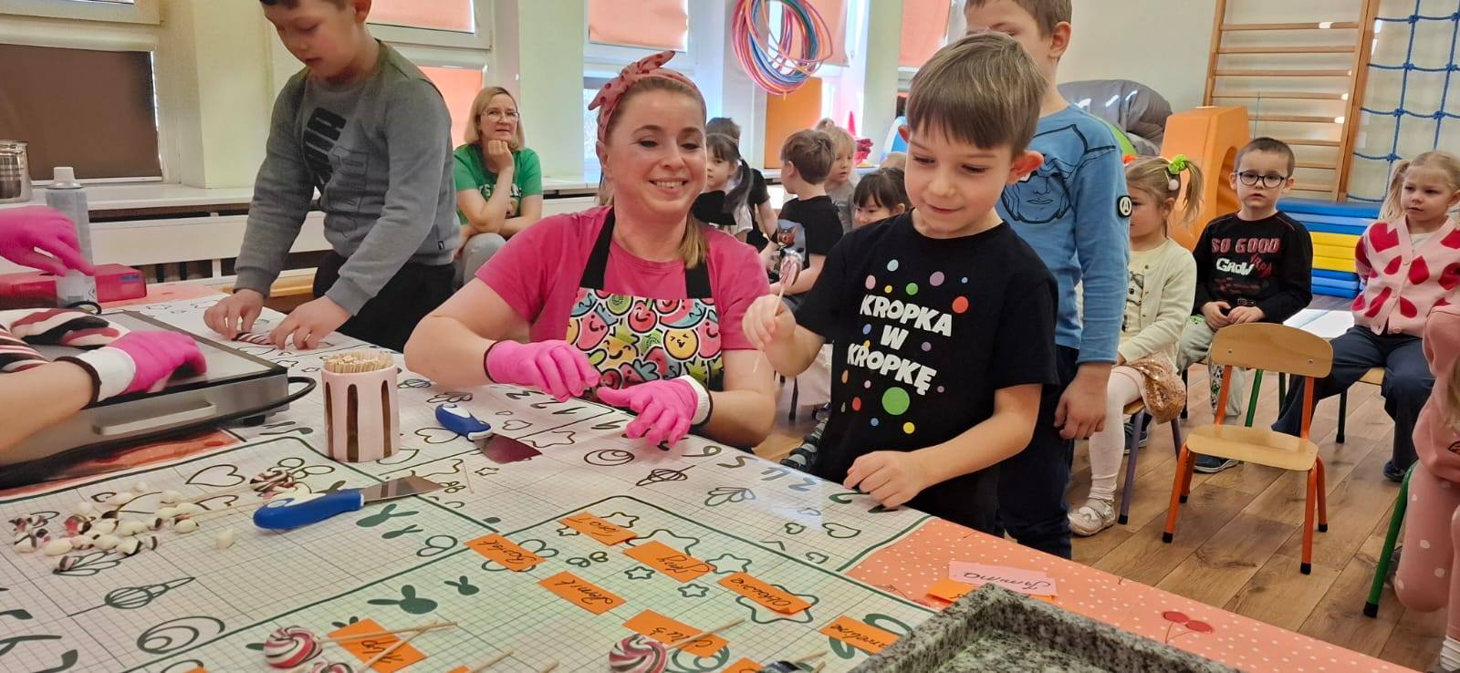 Warsztaty wywołały ogromny uśmiech na twarzach naszych Przedszkolaków było miło i bardzo słodko. Każdy mógł poczuć się jak mistrz cukiernictwa formując lizaki i oczywiście próbując swoich słodkich dzieł. Na koniec zgodnie wszyscy stwierdziliśmy, że to były najsmaczniejsze warsztaty na świecie.