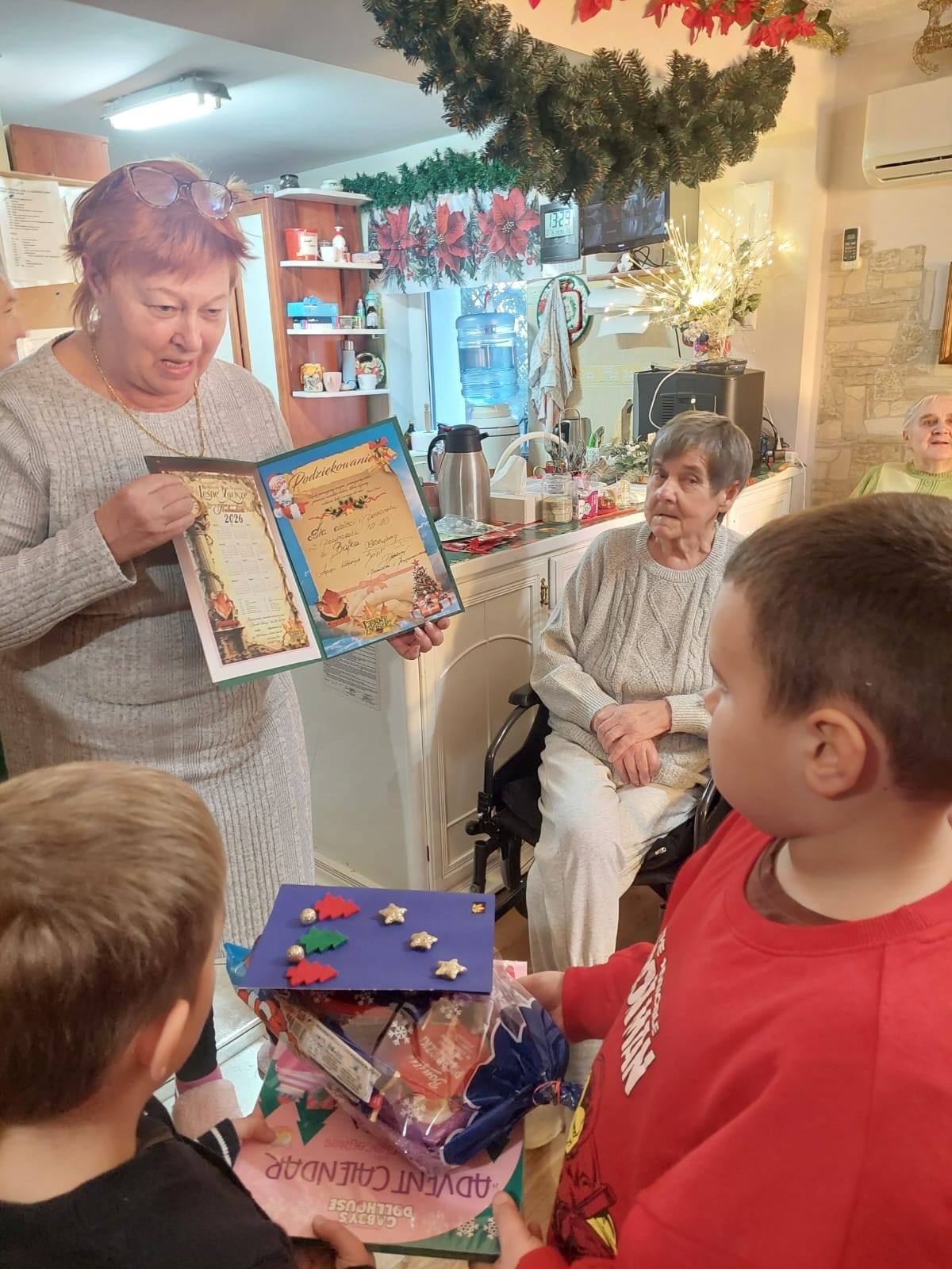 Dzieci z gr. Motylki wraz z Rodzicami odwiedziły Seniorów z Rodzinnego Domu Seniora Leśne Zacisze w Żarach, przekazały świąteczne stroiki i życzenia. Dziękujemy pani Marcie mamie Miłosza, pani Joannie mamie Franka oraz panu Danielowi tacie Karola za wspólnie spędzony czas.