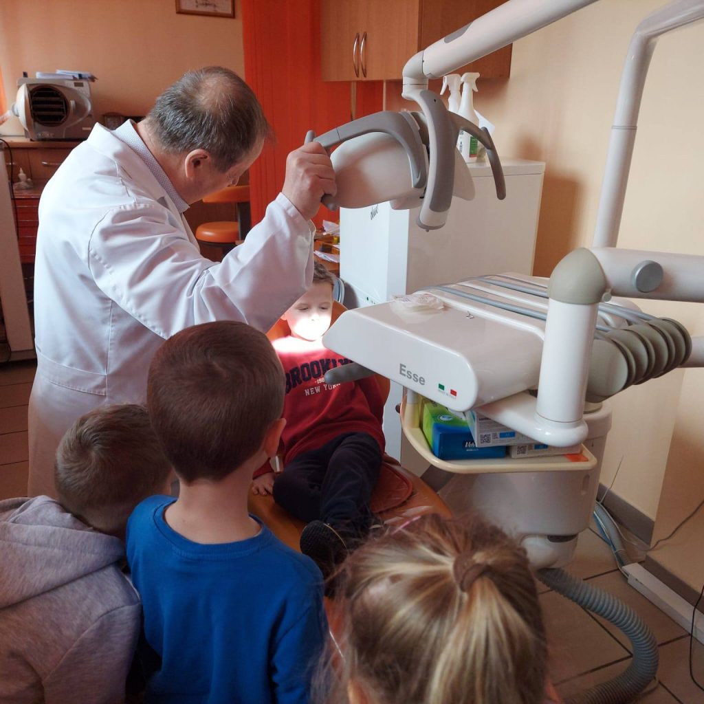 Smerfiki odwiedziły gabinet stomatologiczno – ortodontyczny Pana doktora Ryszarda Opalińskiego. Dziękujemy Rodzicom Mieszka za zorganizowanie wspaniałej wycieczki dzięki, której poznaliśmy pracę ortodonty oraz zasady prawidłowej higieny jamy ustnej.
