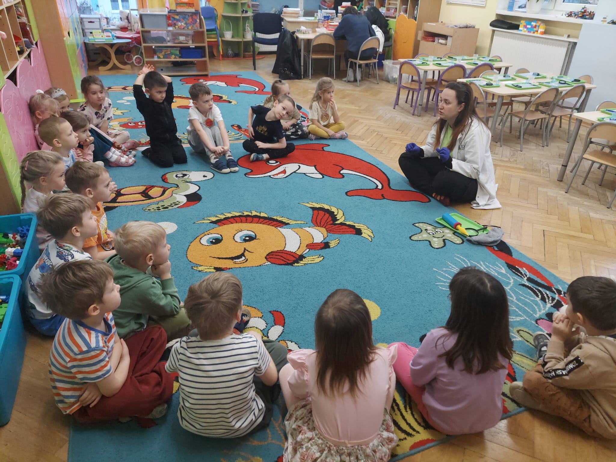 Pszczółki, Elfy, Biedronki, Smerfy i Krasnale w tym tygodniu wzięly udział w trzecim module zajęć grupowych “Emocje, uważność i relaksacja”, które prowadzi Pani Ewa – nasza psycholog. Ćwiczyliśmy umiejętność koncentracji, radzenia sobie ze złością i trudnymi sytuacjami. Kształtowaliśmy w sobie wrażliwość na otoczenie, empatię. Podjęliśmy kolejne wyzwanie skupienia w całkowitej ciszy przez 2 minuty. Dzieliliśmy się swoimi odczuciami.