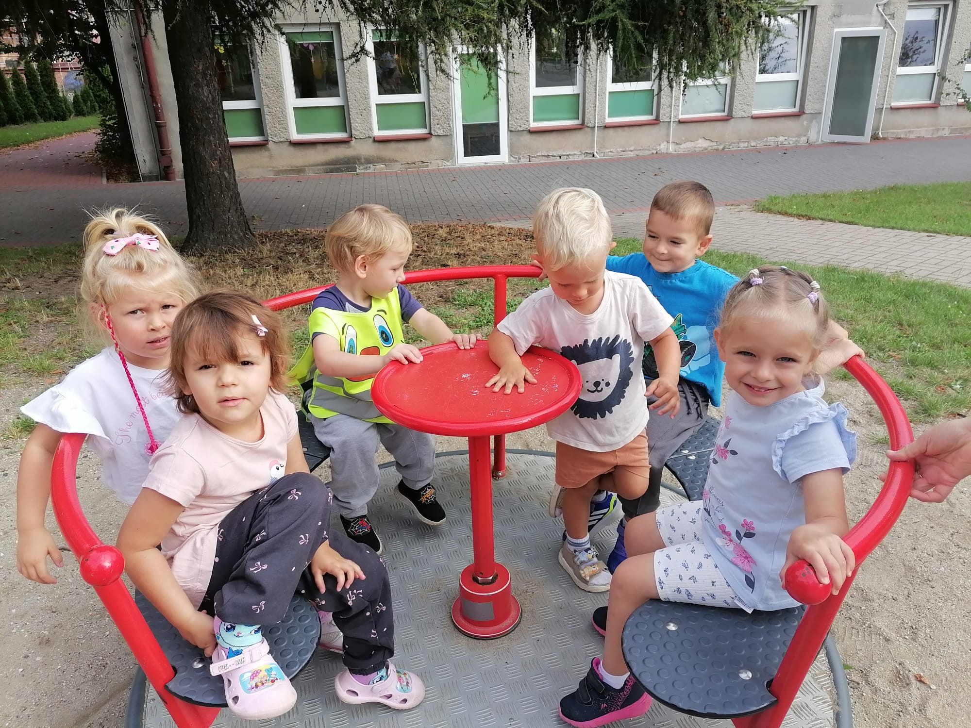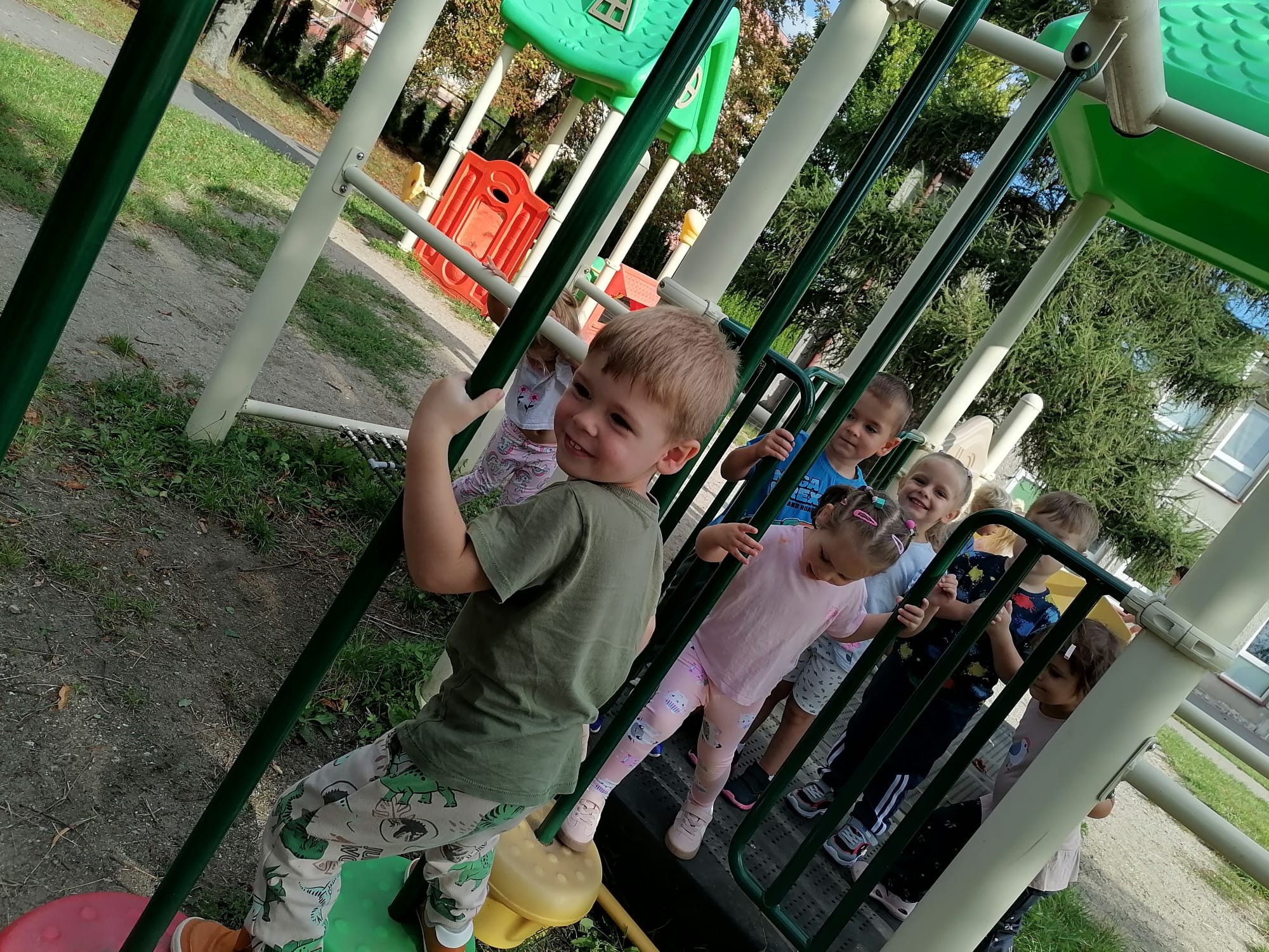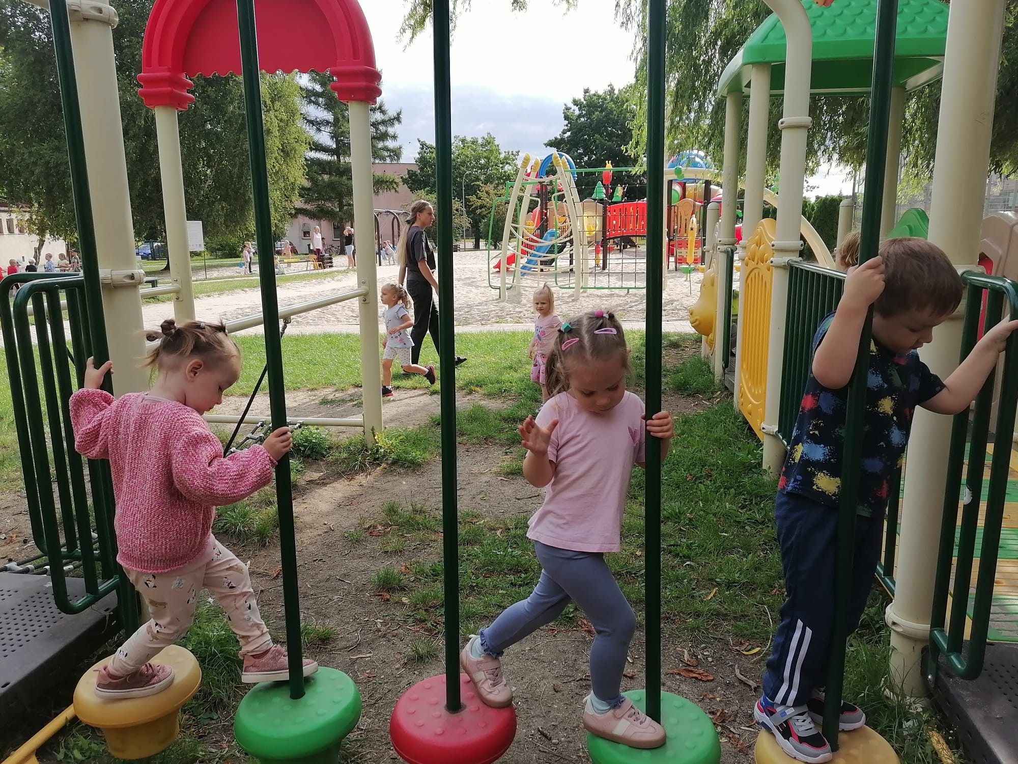 Pierwsze zabawy na placu zabaw w grupie Żabek