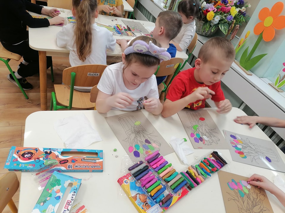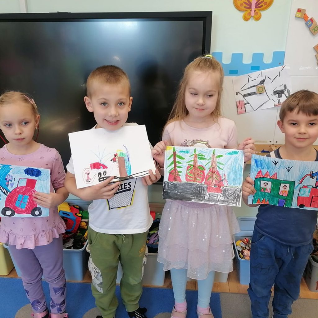 Dzieci wysłuchały czym zajmuje się dzielnicowy oraz nauczyły się w jaki sposób należy przechodzić przez przejście dla pieszych, chętni mogli również przymierzyć atrybuty prawdziwego policjanta na koniec dzieci otrzymały w prezencie kolorowanki oraz kolorowe odblaski.