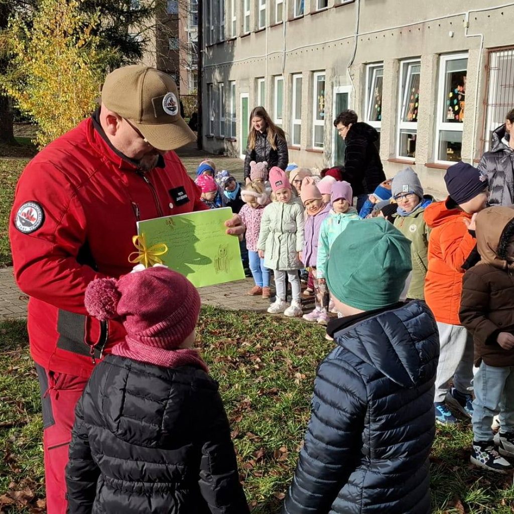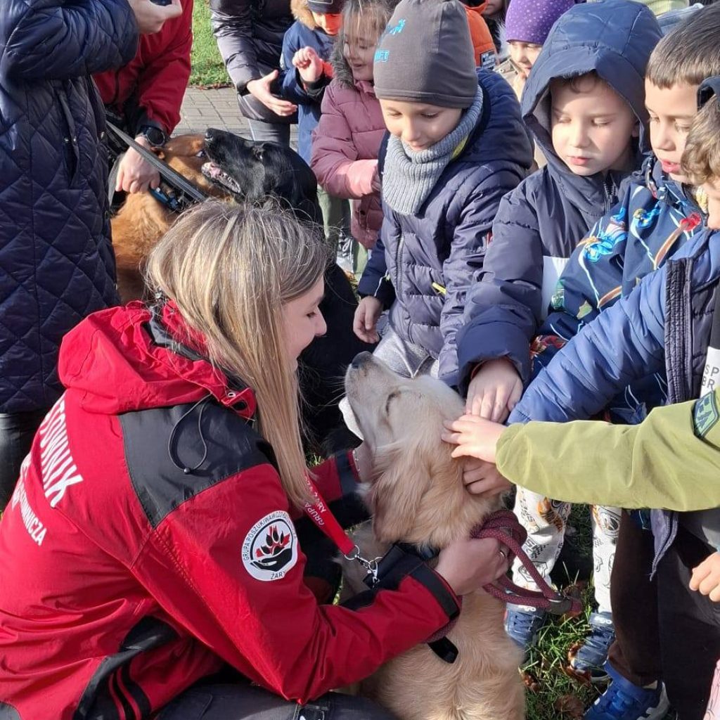 W przedszkolu gościliśmy Grupę Poszukiwawczo – Ratowniczą z Zar Dzieci z gr. Misie, Liski i Stokrotki dowiedziały się jak pracuje w terenie szukając zaginionych osób. atrakcją był pokaz umiejętności psów ratowniczych. Dziękujemy za miłe spotkanie oraz przeprowadzenie cennej lekcji o pomaganiu innym.