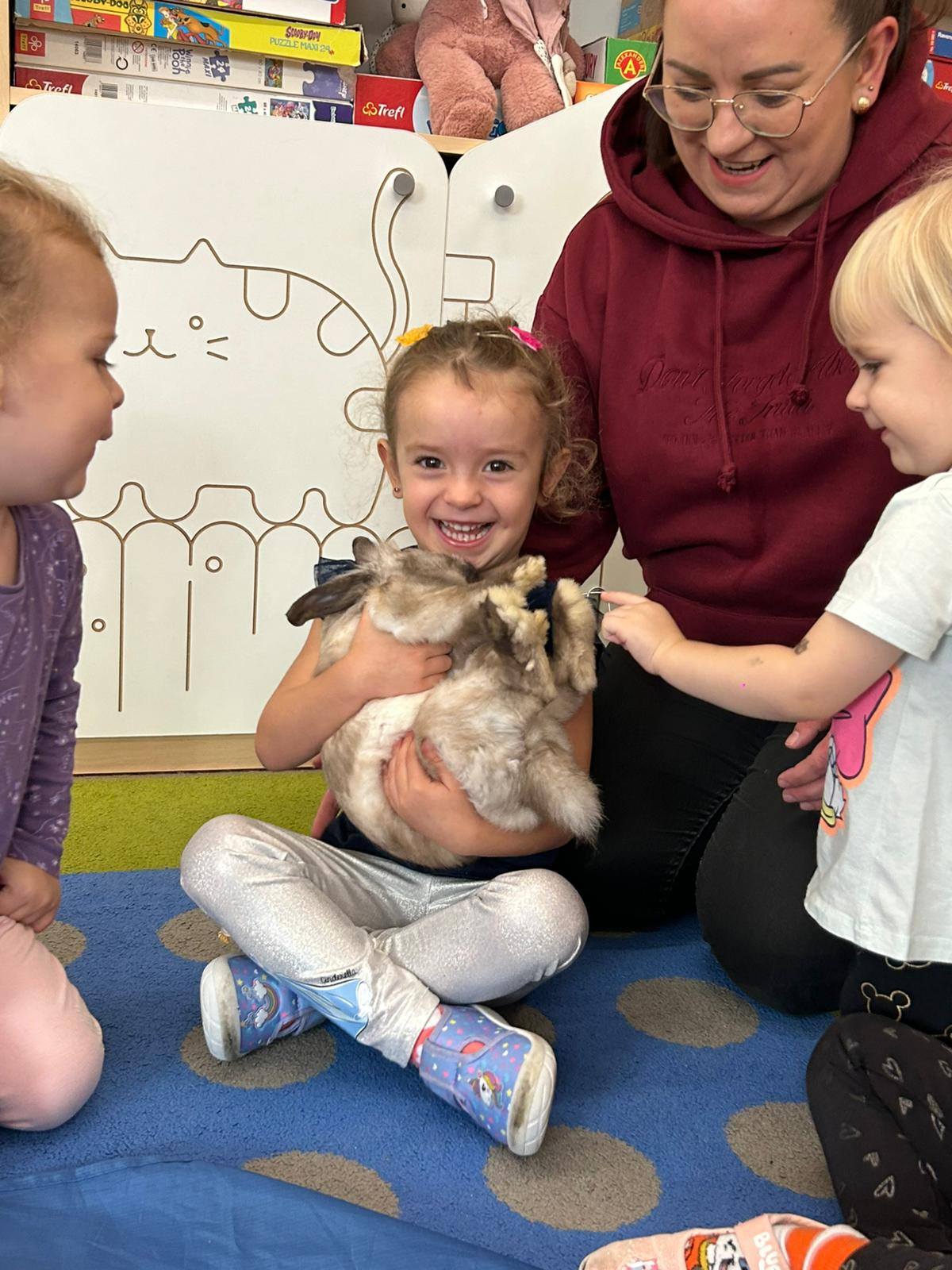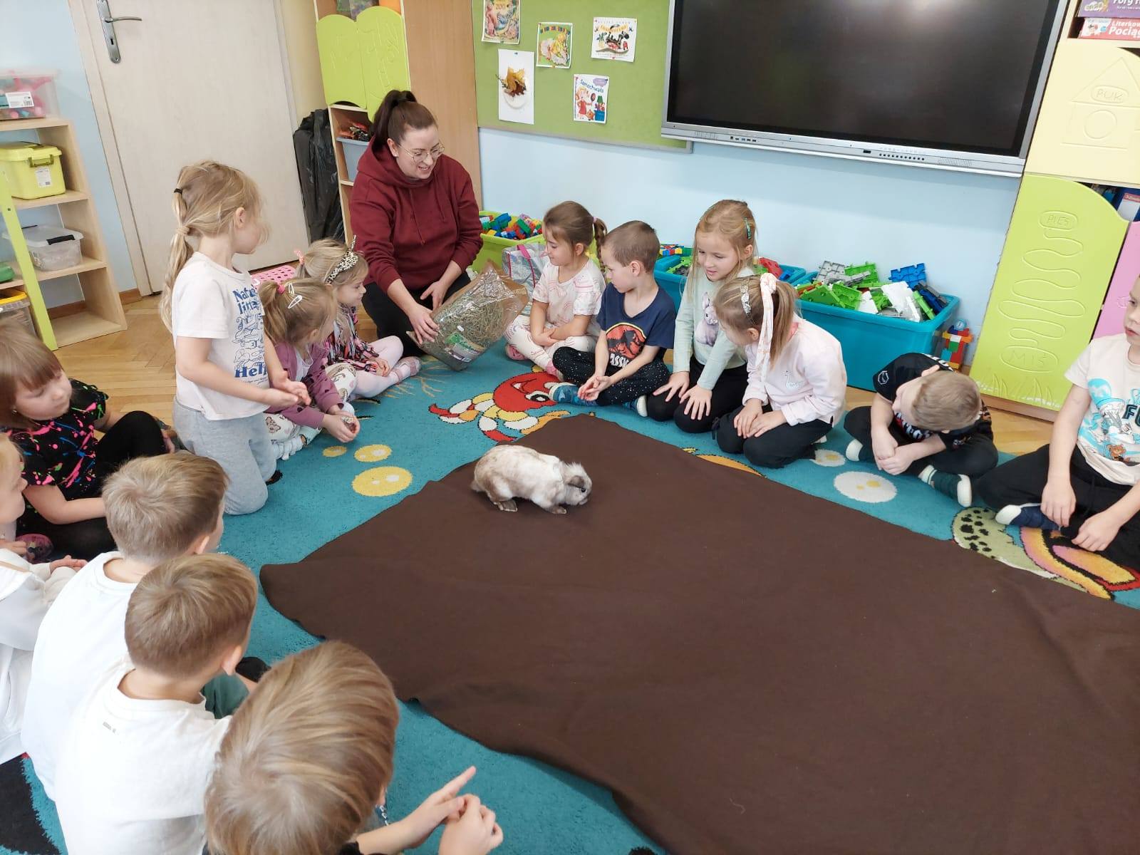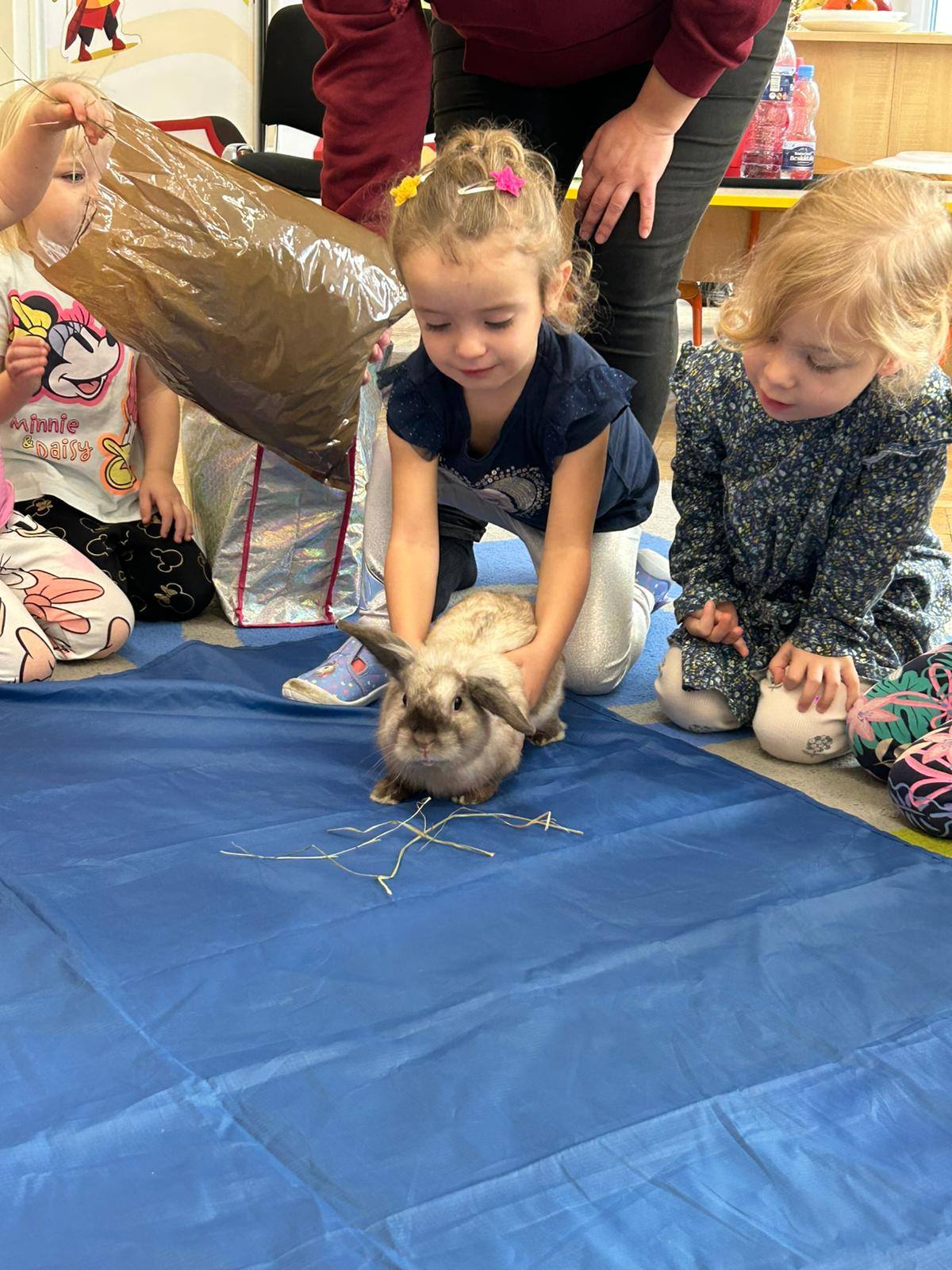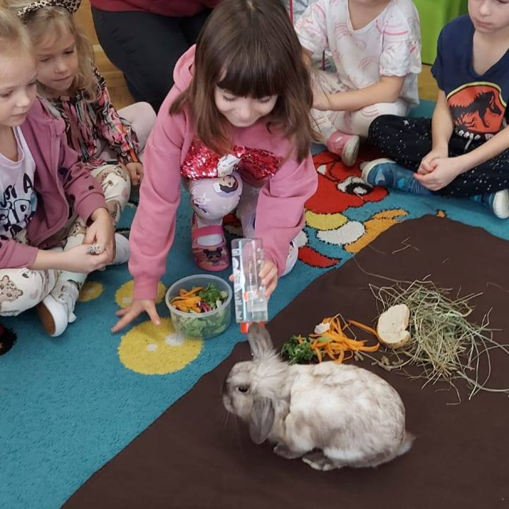 W dniu dzisiejszym Pszczółki odwiedziła Pani Magda mama naszej Kornelki wraz z króliczkiem o imieniu Zosia. dowiedziały się w jaki sposób opiekować się zwierzaczkiem. Dziękujemy Pani Magdzie za wspaniałe zajęcia.