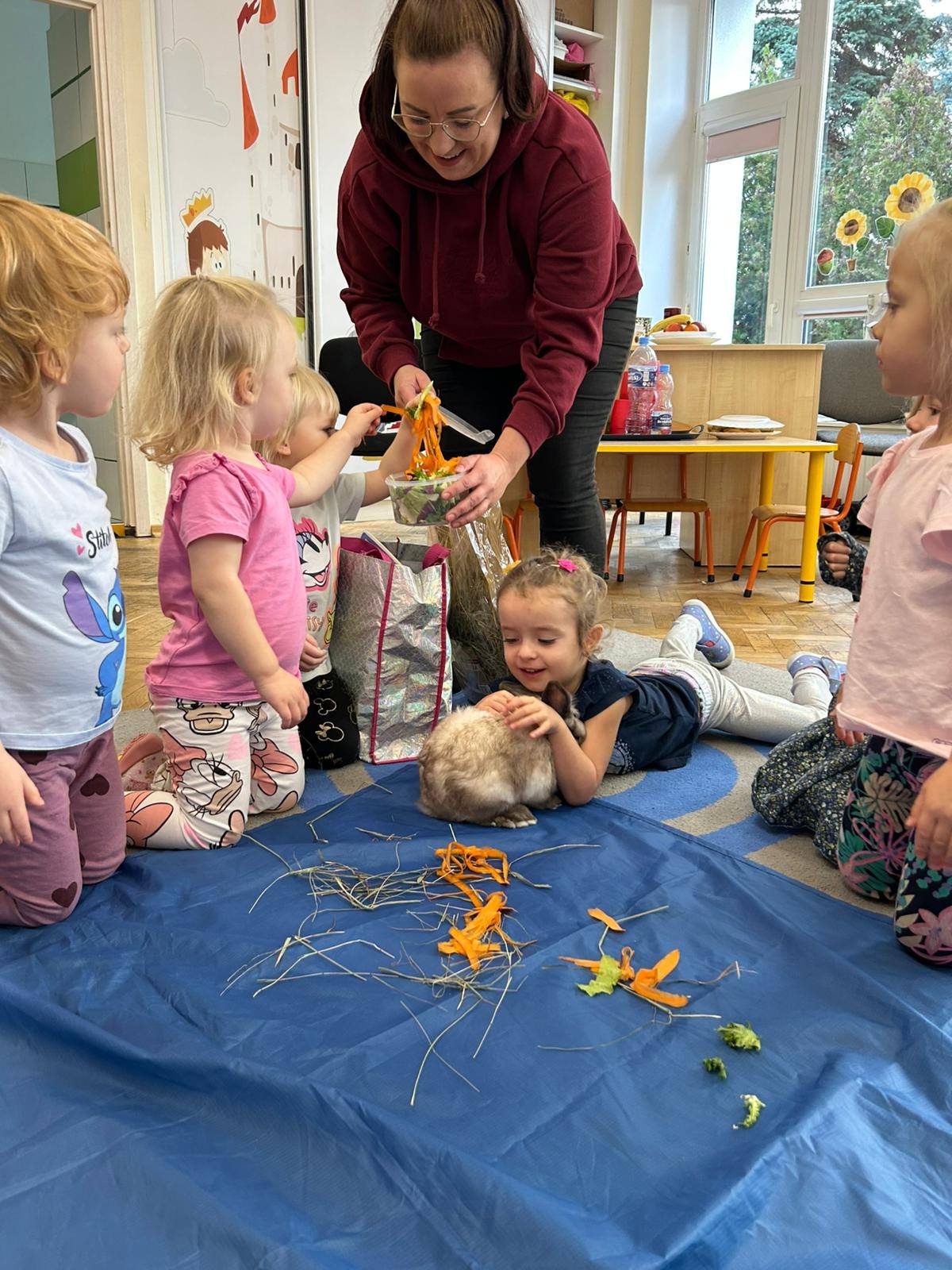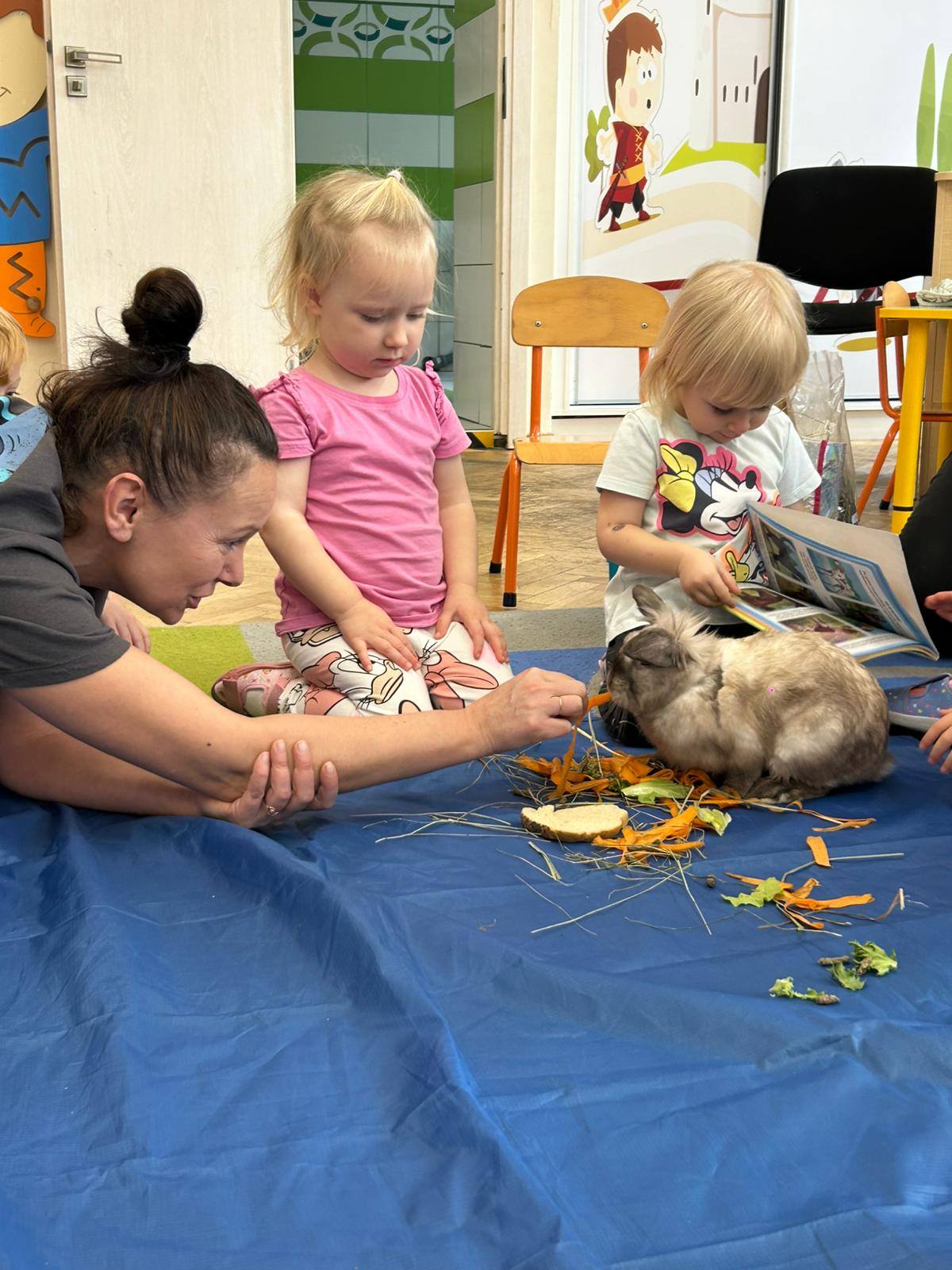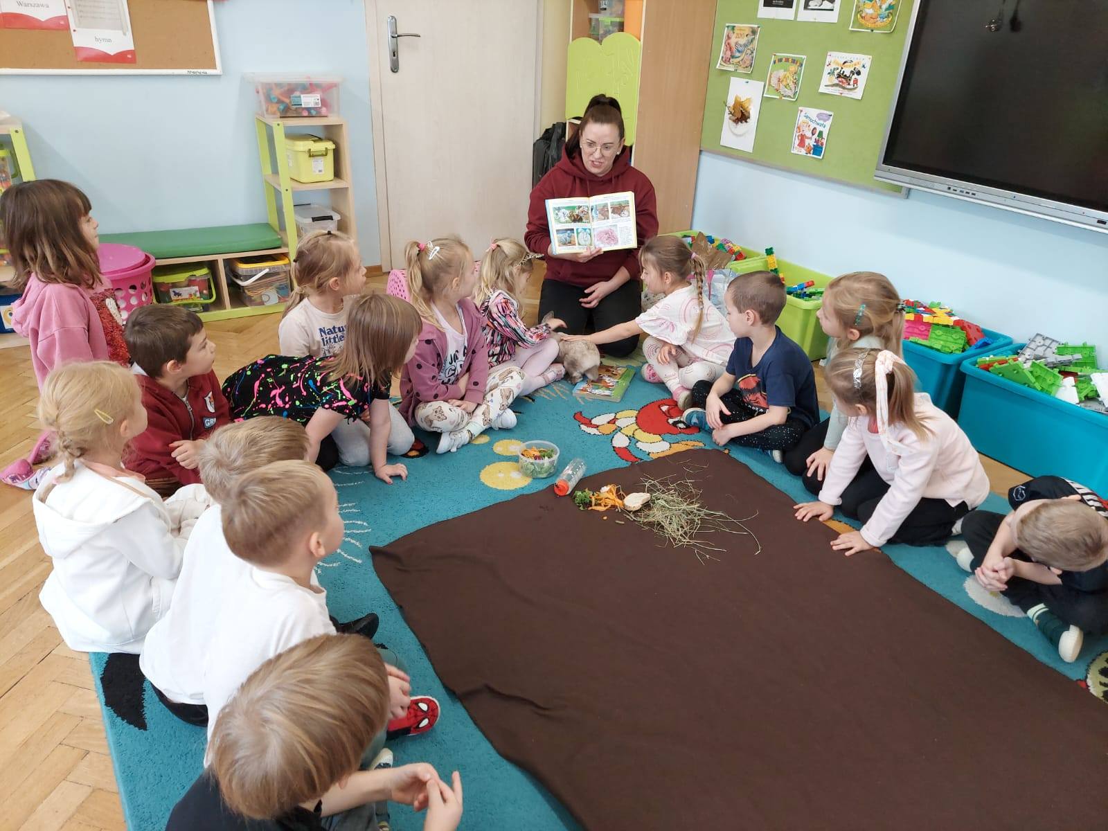 W dniu dzisiejszym Pszczółki odwiedziła Pani Magda mama naszej Kornelki wraz z króliczkiem o imieniu Zosia. dowiedziały się w jaki sposób opiekować się zwierzaczkiem. Dziękujemy Pani Magdzie za wspaniałe zajęcia.
