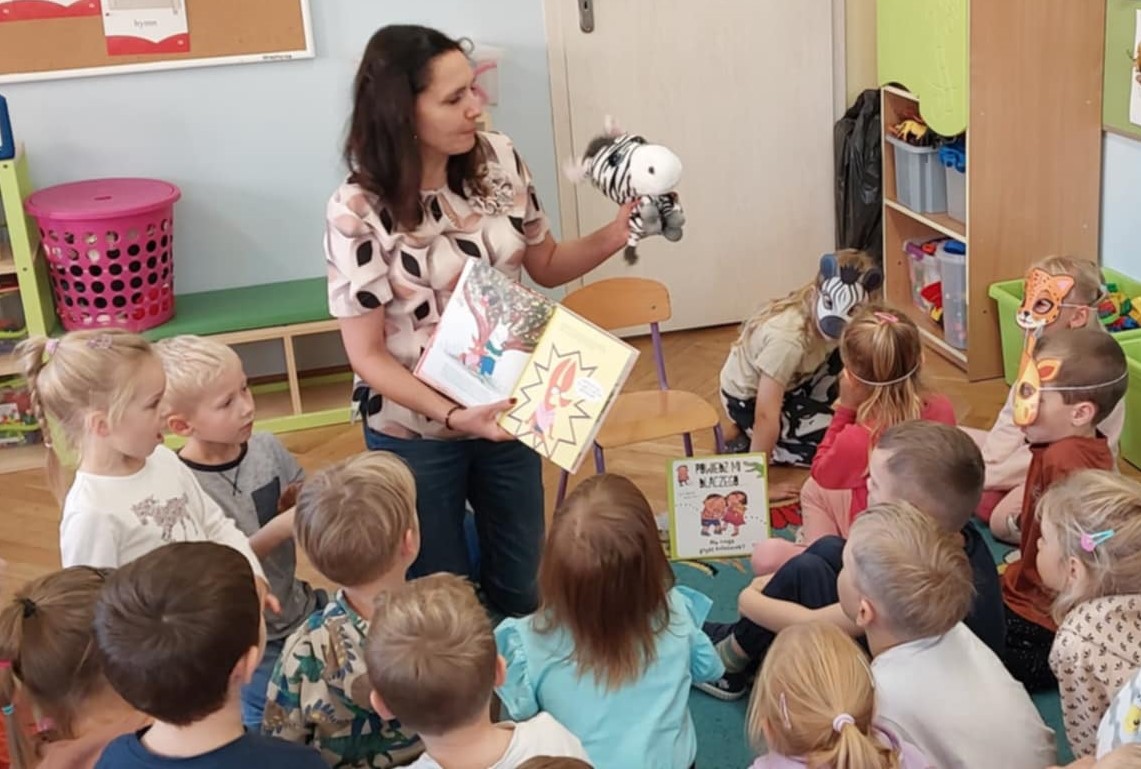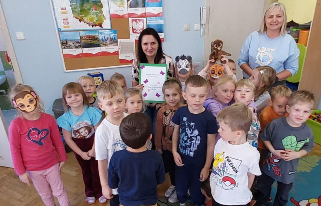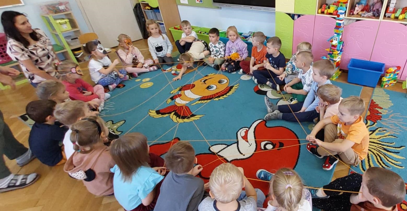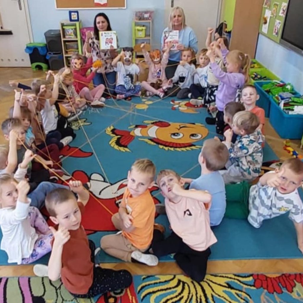 Pięciolatki poznały historyjkę o skłóconych mieszkańcach sawanny, którzy dzięki radom mądrej żyrafy potrafili zrozumieć swoje potrzeby i tym samym spojrzeć ze zrozumieniem na drugą osobę. Następnie milusińscy, stosując zasady porozumienia bez przemocy, doradzali Stefkowi i jego koleżance Heli jak powinni się zachować w sytuacji, gdy chcą pobawić się zabawką innego dziecka. Smerfiki wiedzą już, że zawsze trzeba zapytać właściciela o zgodę. Na zakończenie odbyły się dwie zabawy w kręgu – ,,Jestem z siebie dumny…” i ,,Pajęczyna życzliwości”.Dziękujemy za mile spędzony czas.