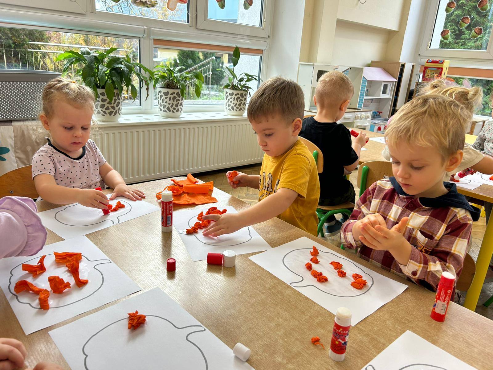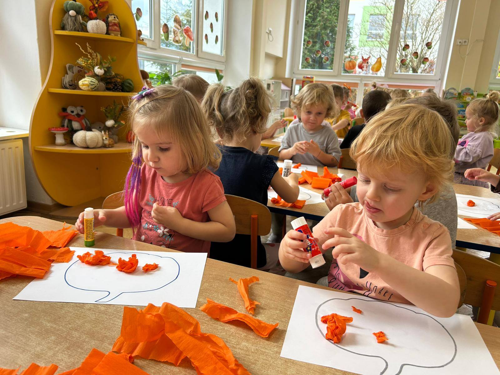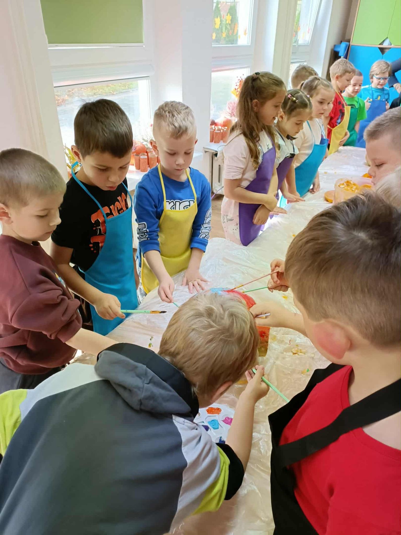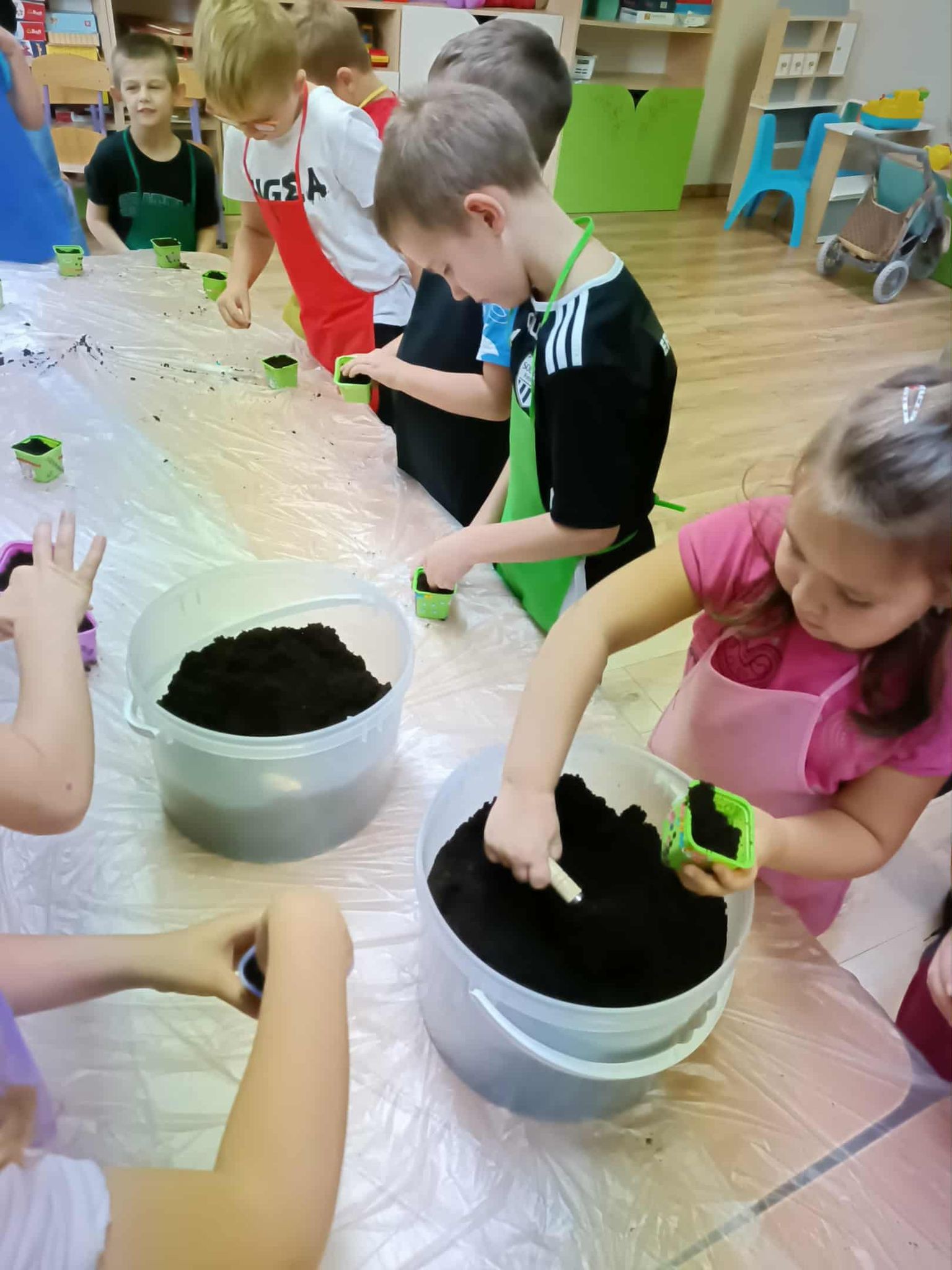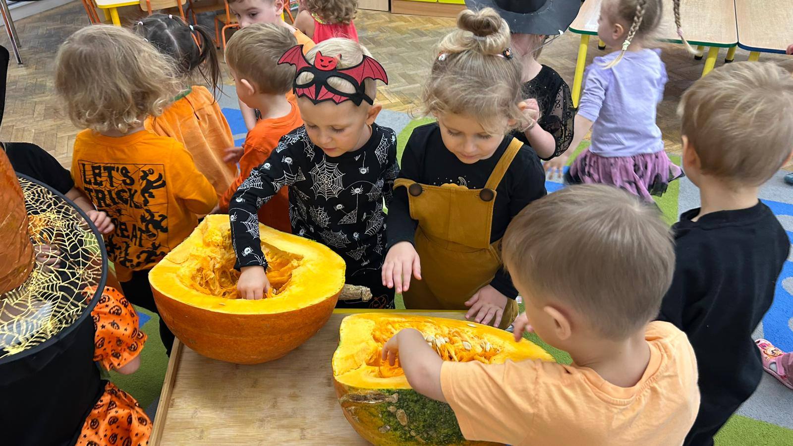 Warsztaty Mały Ogrodnik w grupie Lisków w trakcie których dzieci poznały cykl życia roślin, dowiedziały się jak o nie dbać, do czego nam są potrzebne oraz czym się żywią. Stworzyły przedszkolną mini szklarnię oraz wyrzeźbiły lampiony z dyni.
