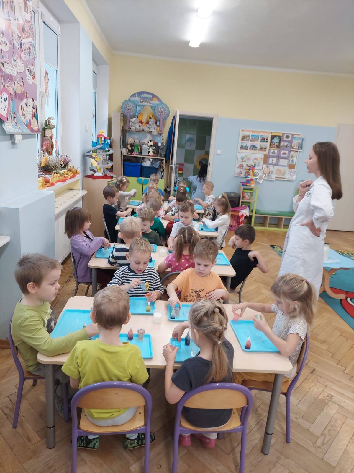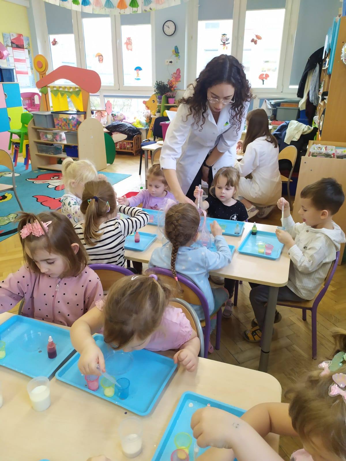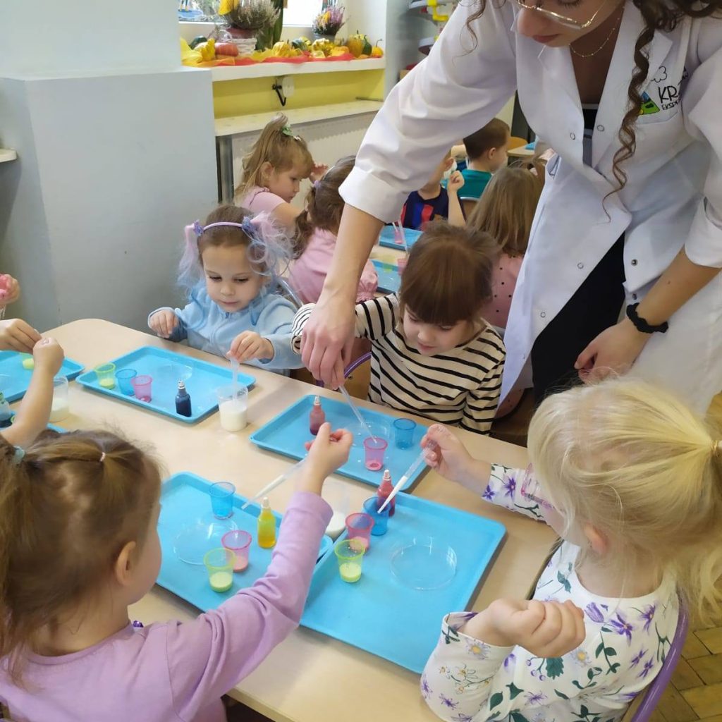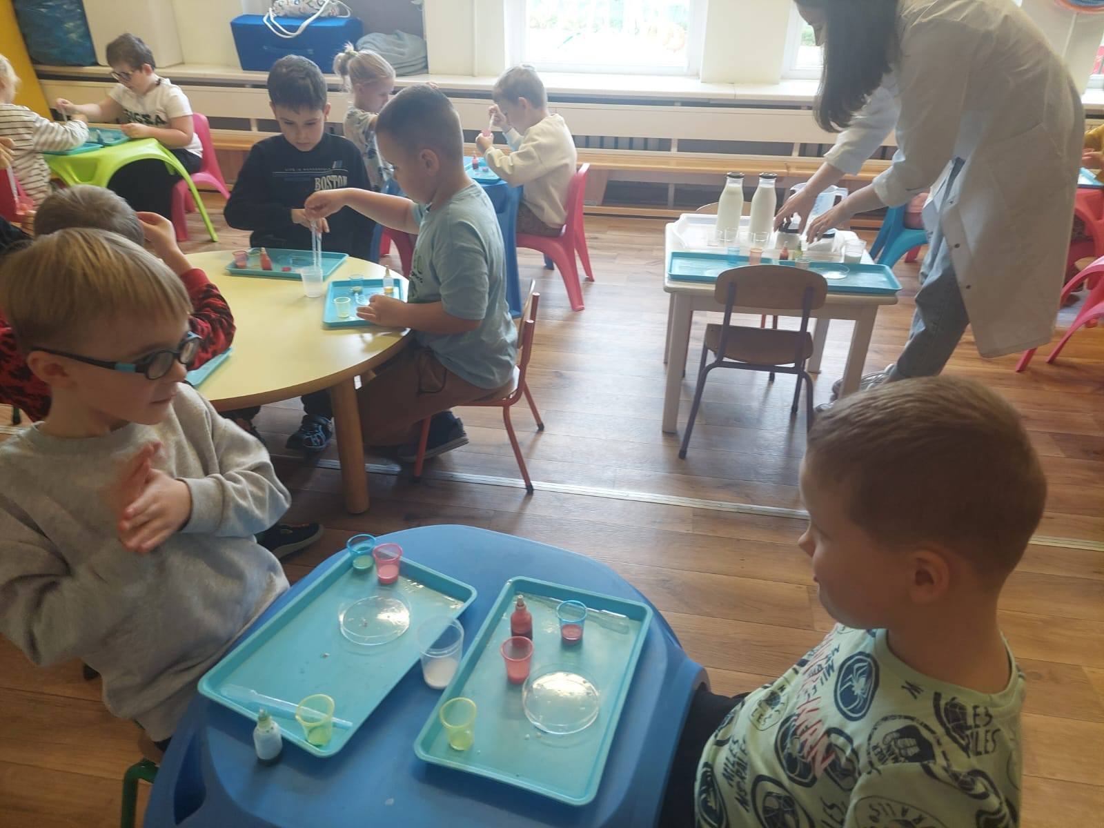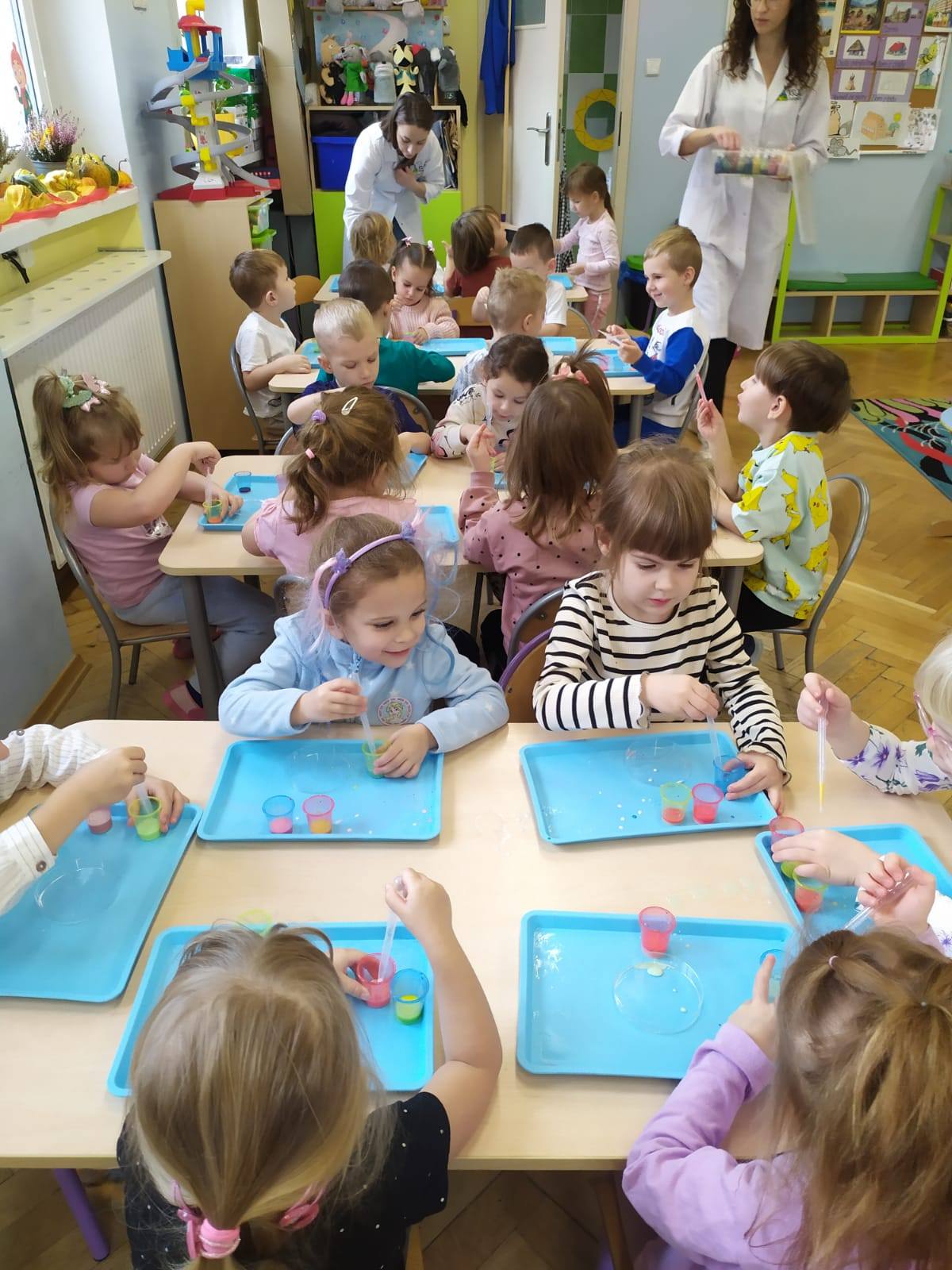 W ramach realizacji innowacji pedagogicznej ‚Pomysły na zmysły ‚ Stokrotki poznały dzisiaj kolejną z mas sensorycznych – sztuczny śnieg.