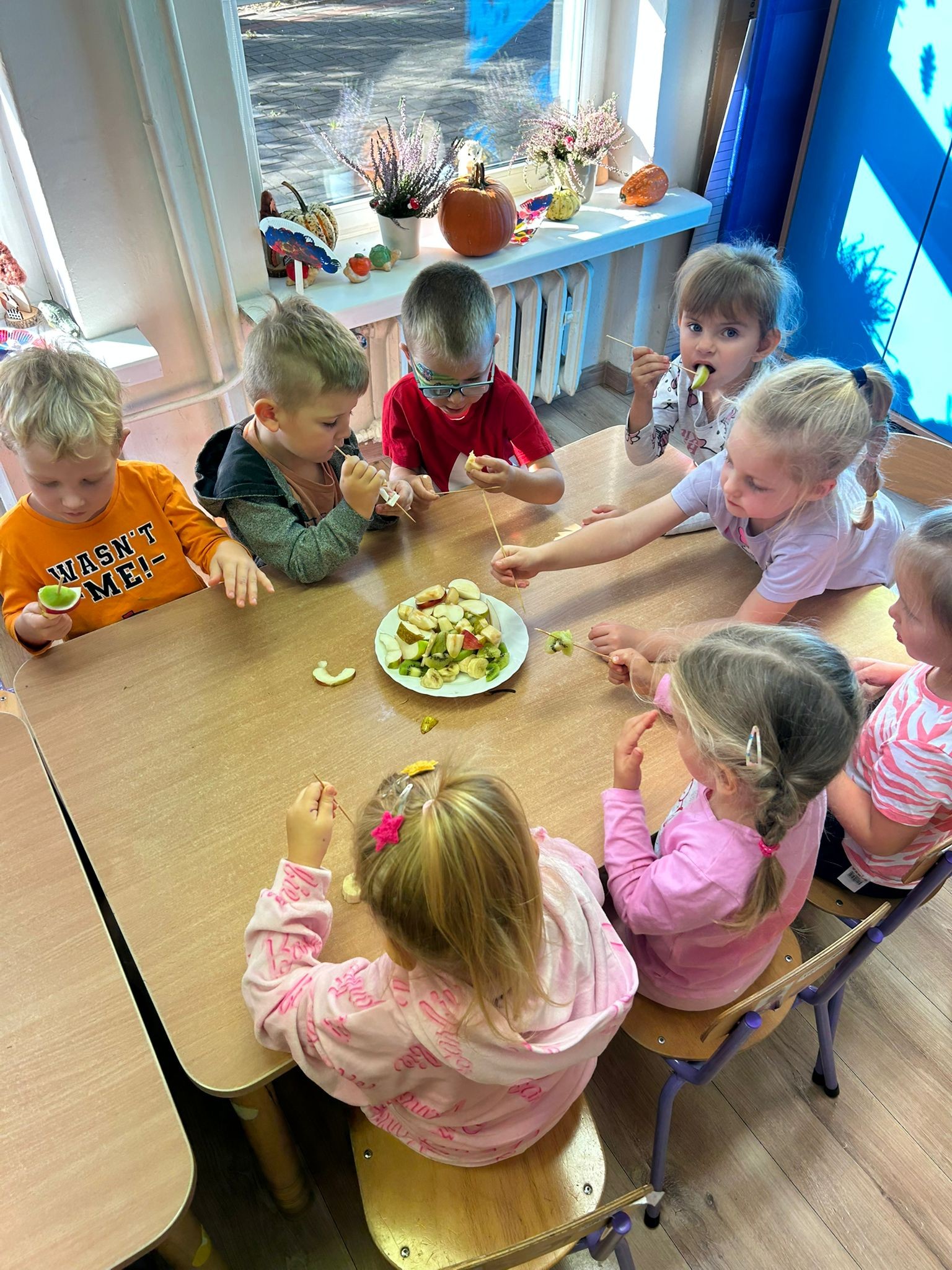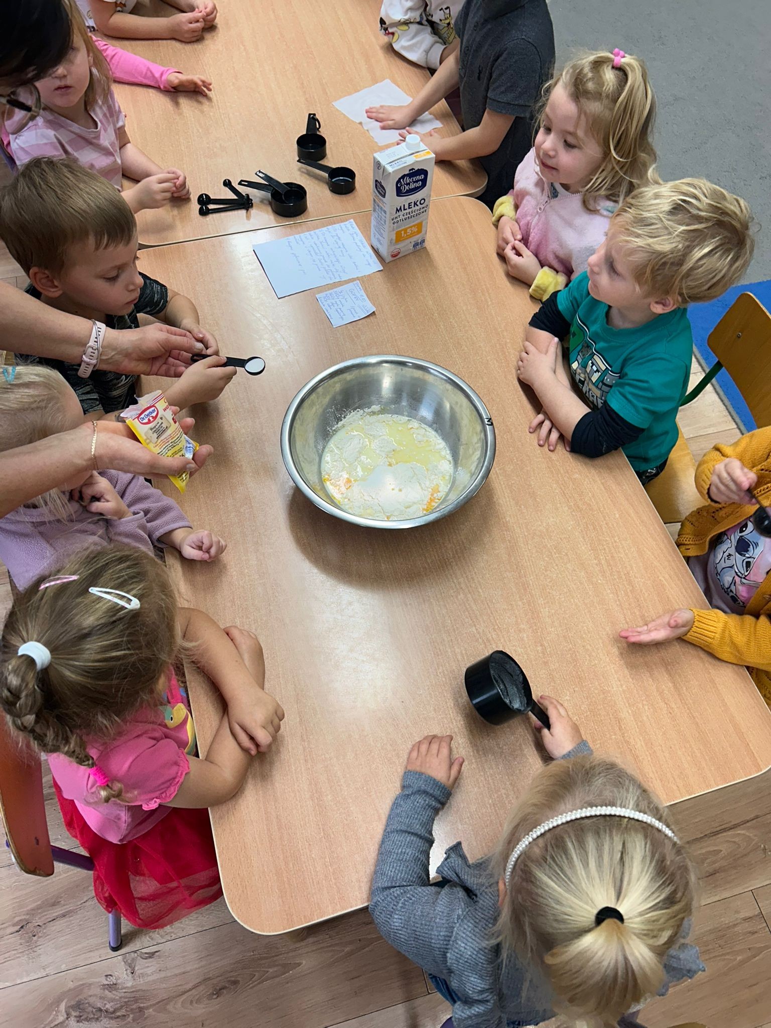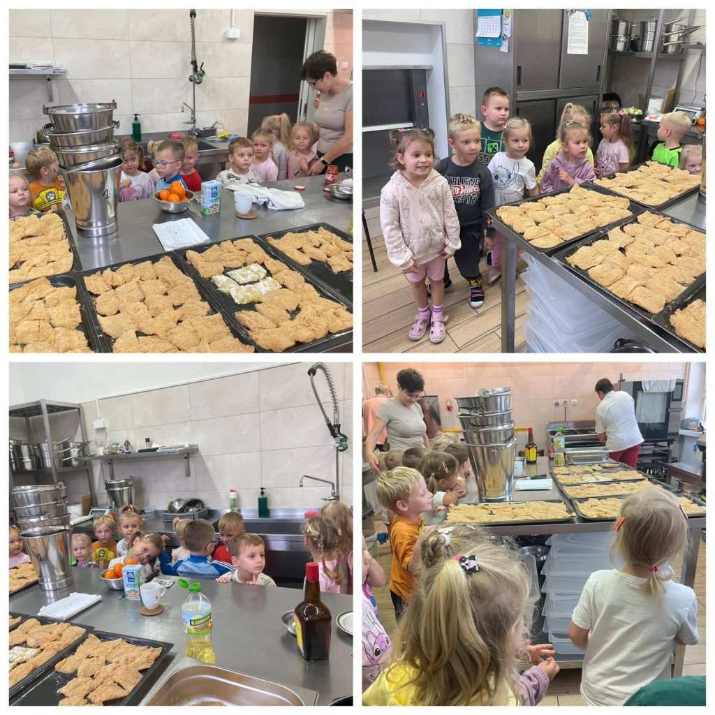 Stokrotki w ramach autorskiego programu „Kim chcę zostać w przyszłości – przedszkolaki poznają zawody” udały się na wycieczkę do przedszkolnej kuchni aby zobaczyć jak wygląda praca Kucharza.