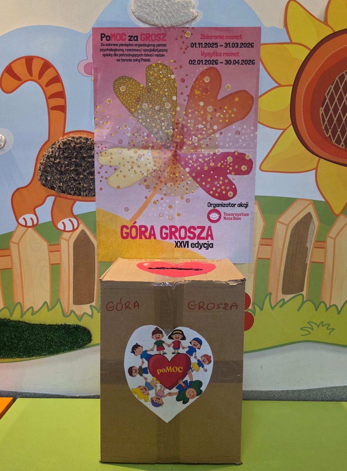 Przedszkole nr 10 w Żarach po raz kolejny bierze udział w akcji charytatywnej “Góra Grosza – poMOC za grosz”. za zebrane pieniądze, stowarzyszenie Nasz Dom zorganizuje pomoc psychologiczną, rzeczową i specjalistyczną dla potrzebujących dzieci i rodzin na terenie całej Polski. Pieniądze można wrzucać do puszki, która znajduje się w szatni w placówce przy ul. Okrzei. Z góry dziękujemy za udział
