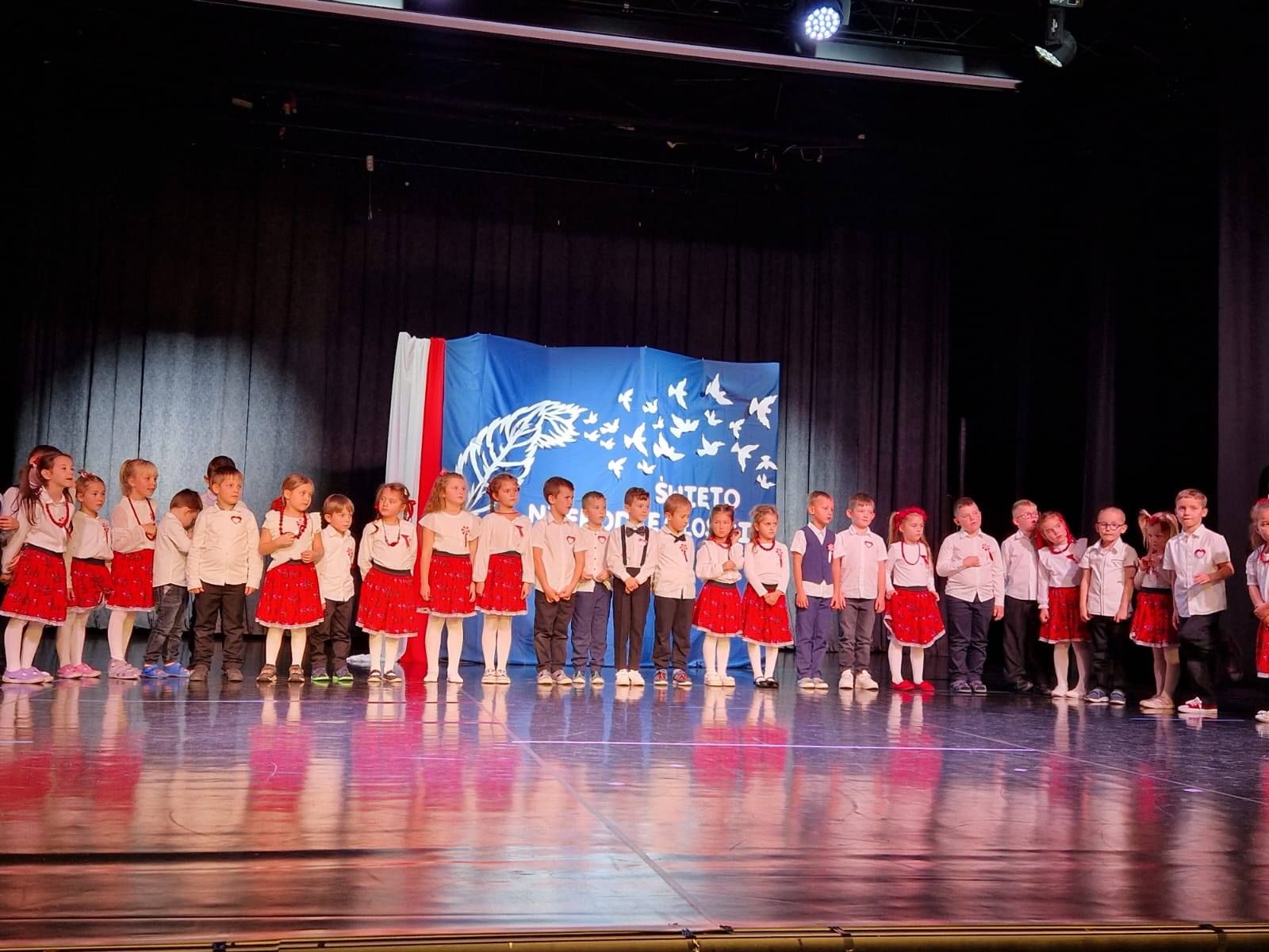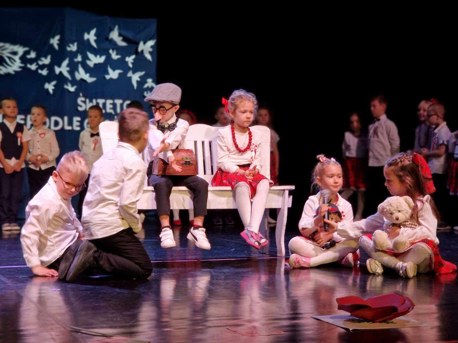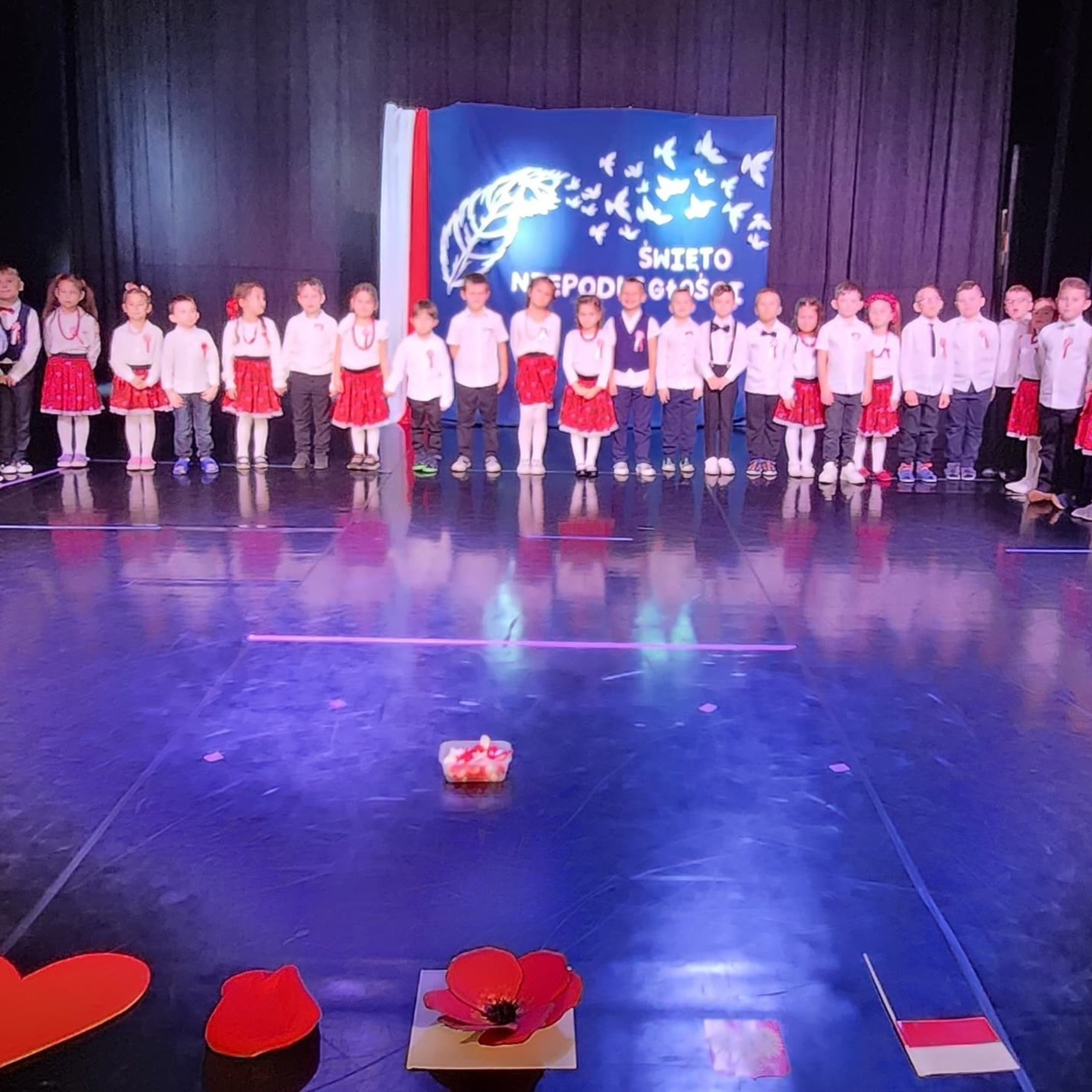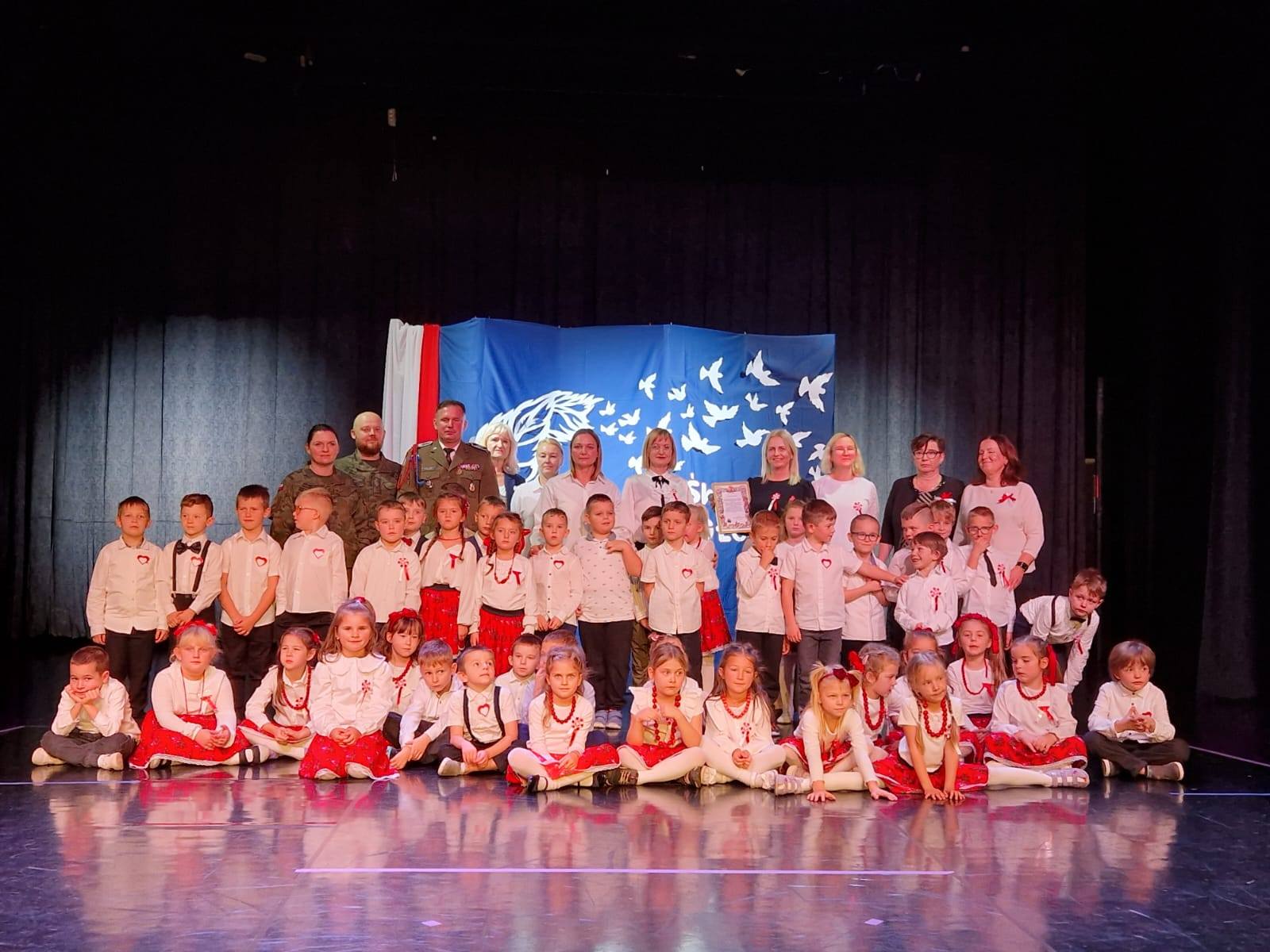 Uroczysty występ z okazji Święta Niepodległości w sali widowiskowej “Luna”, przygotowany przez dzieci z grupy “Liski” oraz “Misie 9 listopada 2025 Małgorzata WojciechowskaAktualnościKomunikatyLiskiMisie